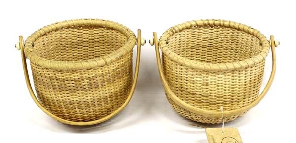 Pair of Nantucket Home Hand Crafted Baskets, measure 5'' x 6'', single handle on each, made in China