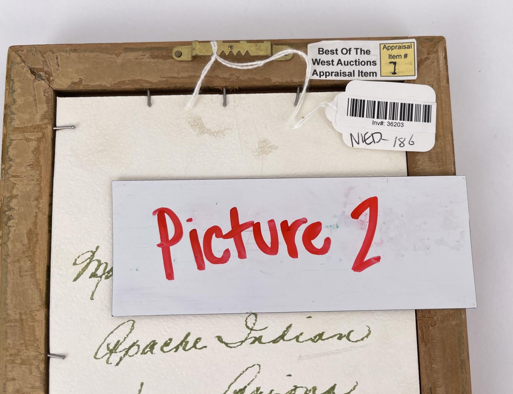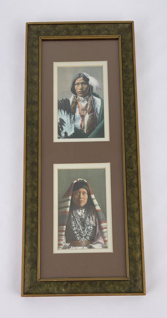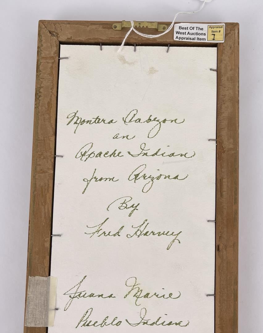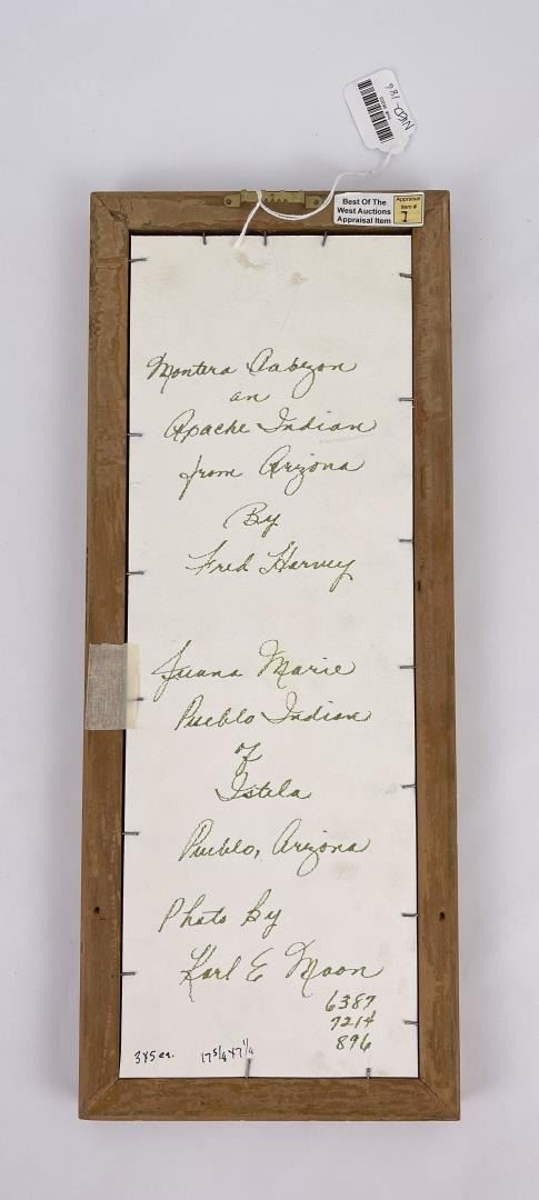 Apache by Fred Harvey and Pueblo by Karl Moon. 17 1/2" x 7" Framed. Allard Auction Collection Inv: NIED 36203