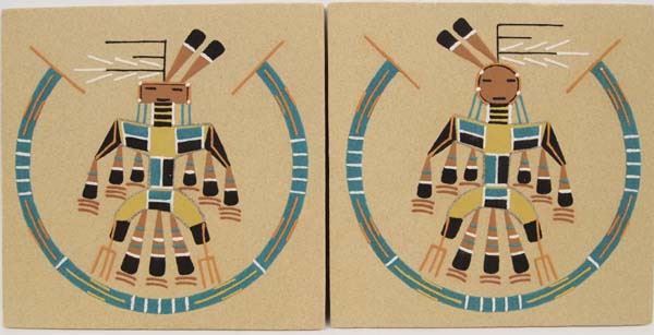 Pair of Native American Navajo Sand Paintings, measure 12'' x 12''