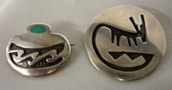 Pair of Navajo Silver Pins. The larger pin can also be worn as a pendant. It measures 1.25'' diameter. Buyers Pay Actual Shipping and Handling Charges(see terms and conditions for more information).