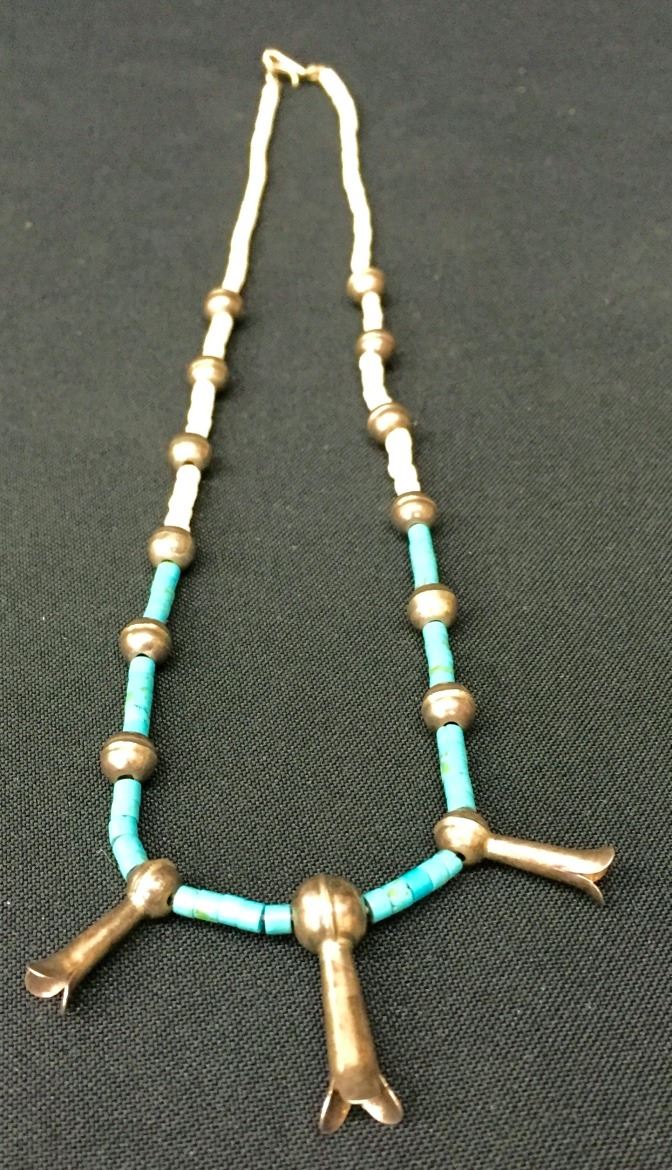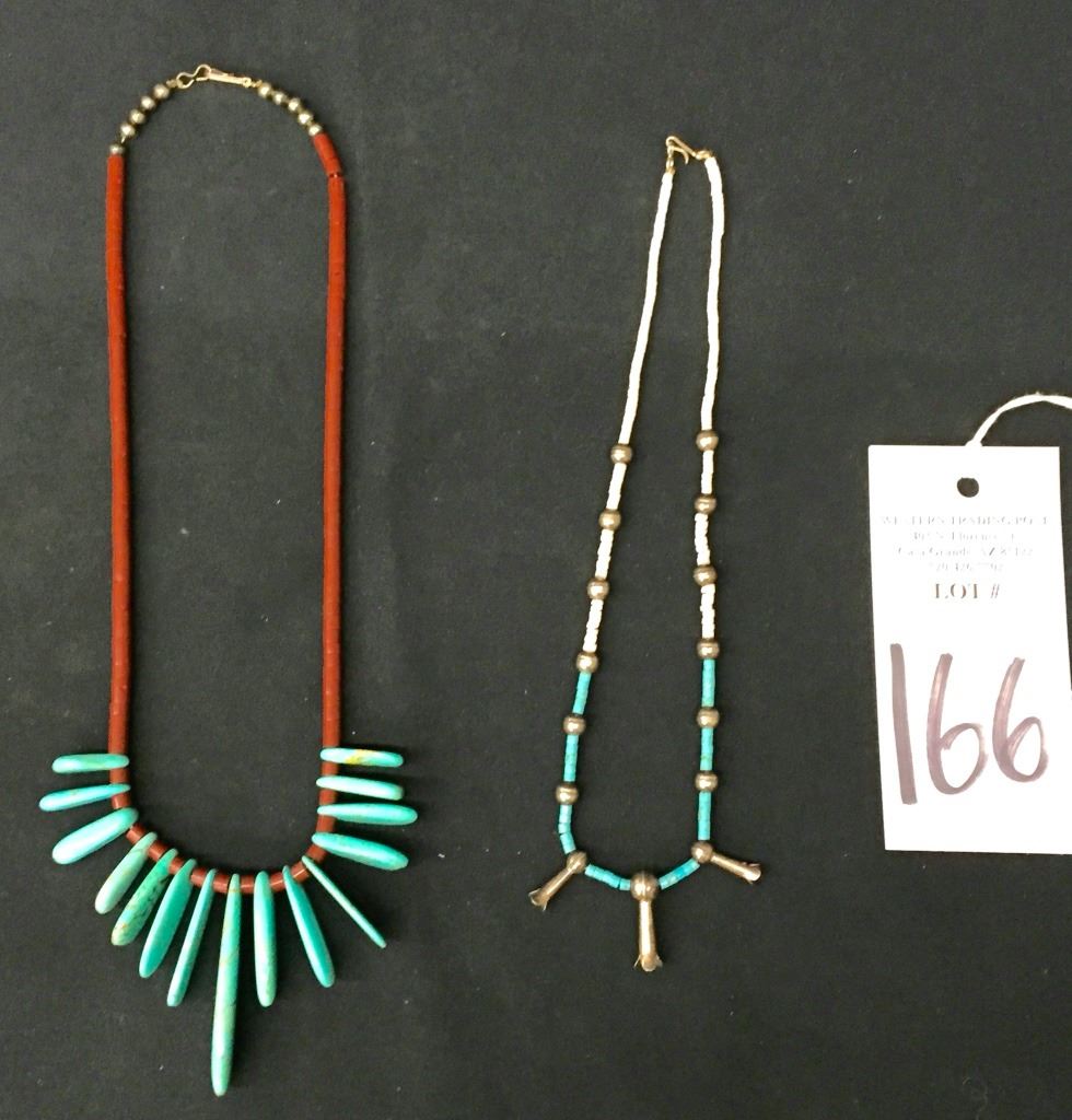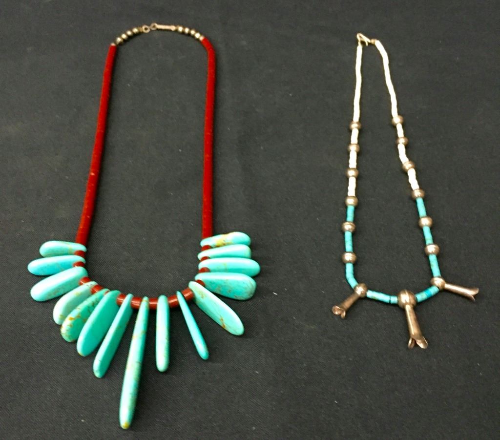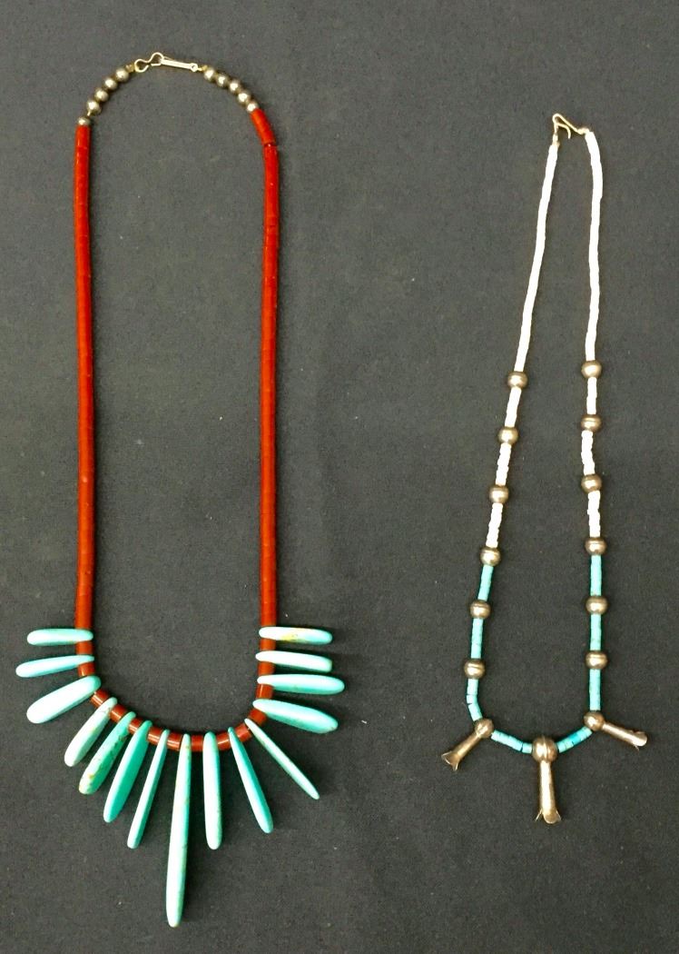 The turquoise and white shell bead necklace features sterling silver accents where applicable. It is 16 inches long. The turquoise and brown shell necklace is 20 inches long (composite materials). Please look closely at pics - they are an important part of our description. Shipping: There will be a $5 handling / packaging fee for shipping this lot. The actual cost of postage will be added on top of that.