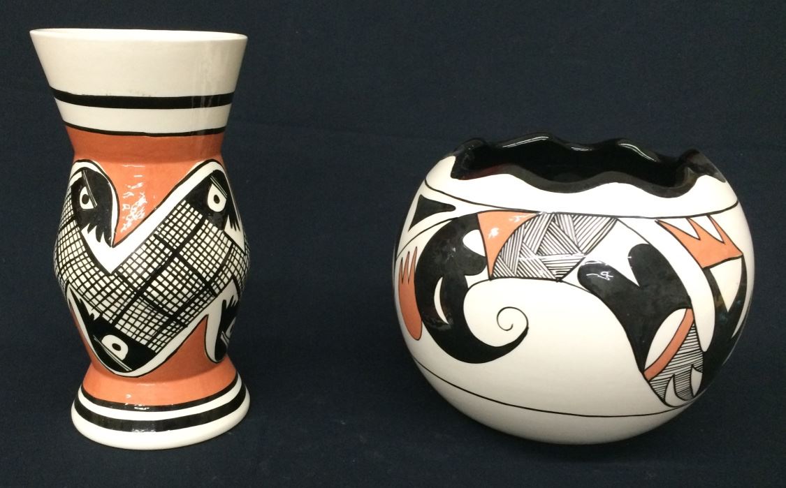 You get a pair of ceramic, Navajo style pots for one money in this lot! Both are signed Kitty and are nicely painted. They measure 7” and 9.5” tall. In very good condition.