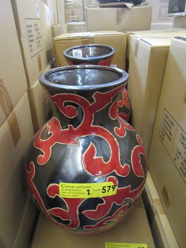 Pair of New Oversize Red & Metallic Glazed Vases
