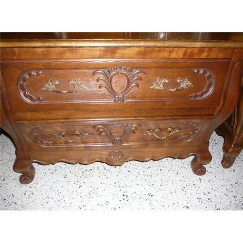 This is a wonderful pair of signed Baker French style walnut nightstands, bedside chests, commodes with two drawers each. They make a beautiful addition in any setting!