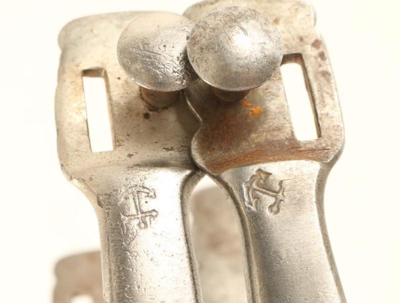 Nickel spurs with engraved dot and star design. Marked with anchor logo. Shows some rust and wear.