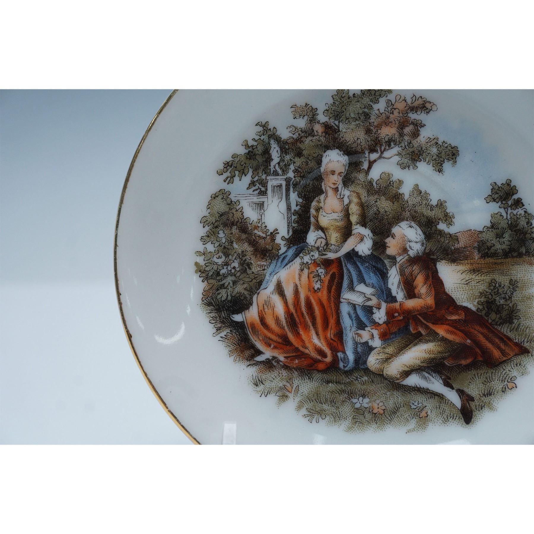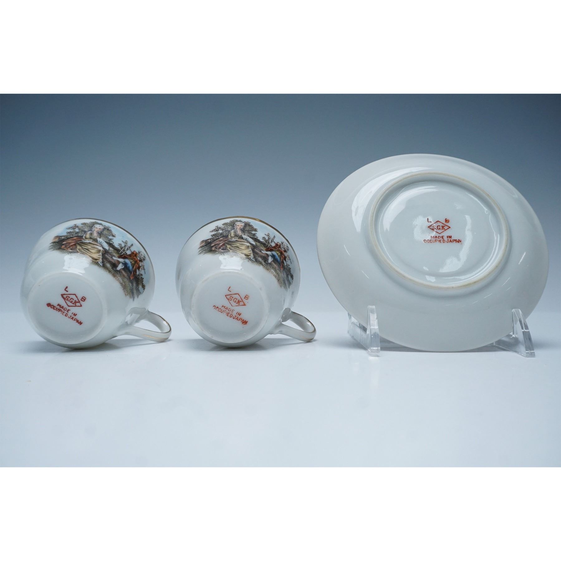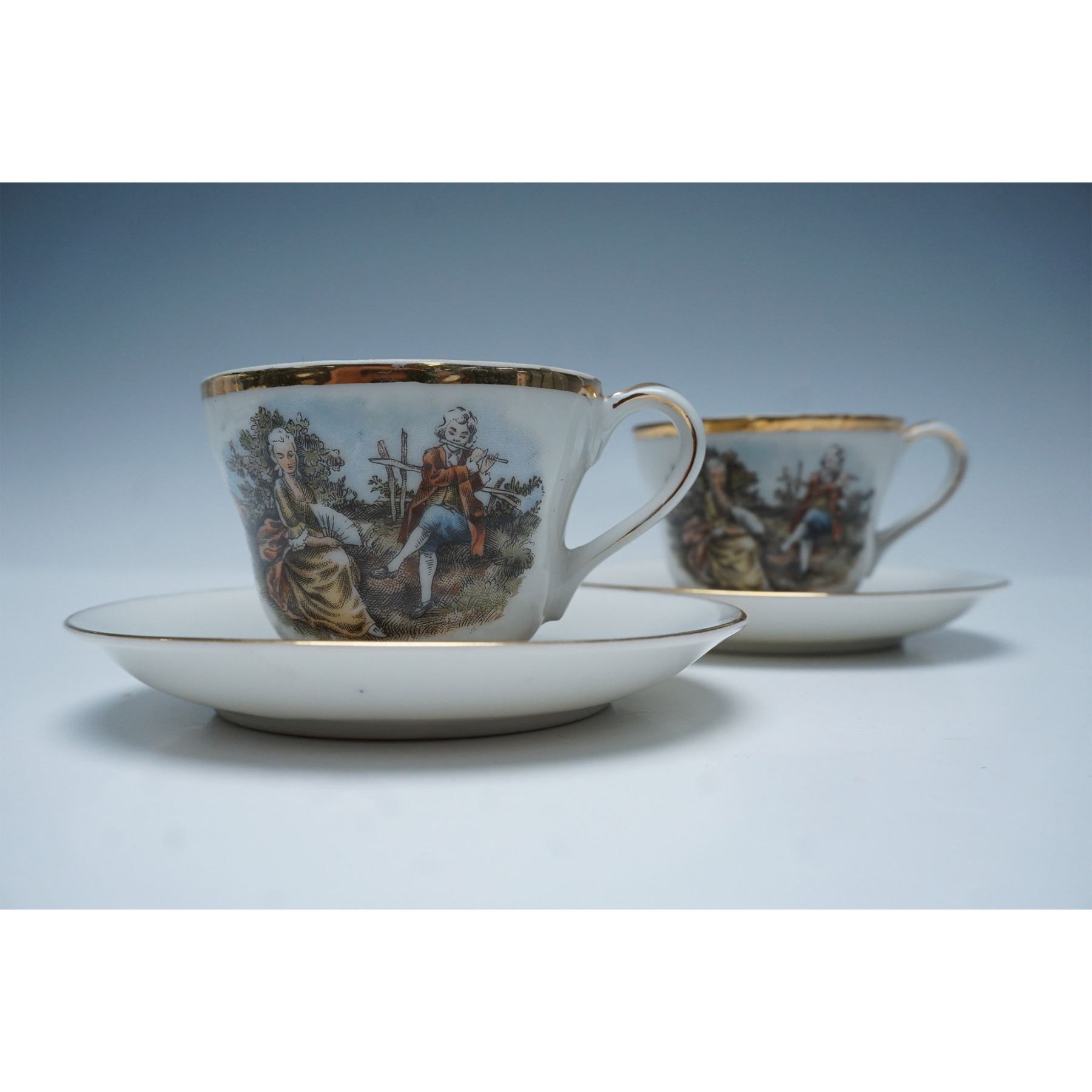 Pair of Occupied Japan Porcelain Cups and Saucers, Rococo Scene