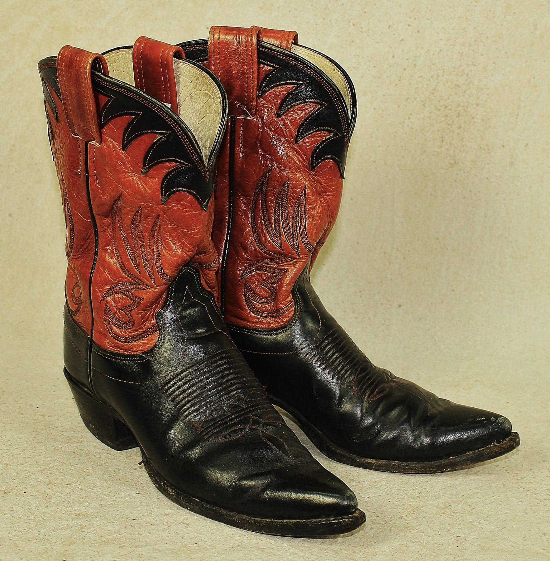 Attractive two-tone cowgirl boots with decorative stitching. Showing very little wear, and in size 7B.