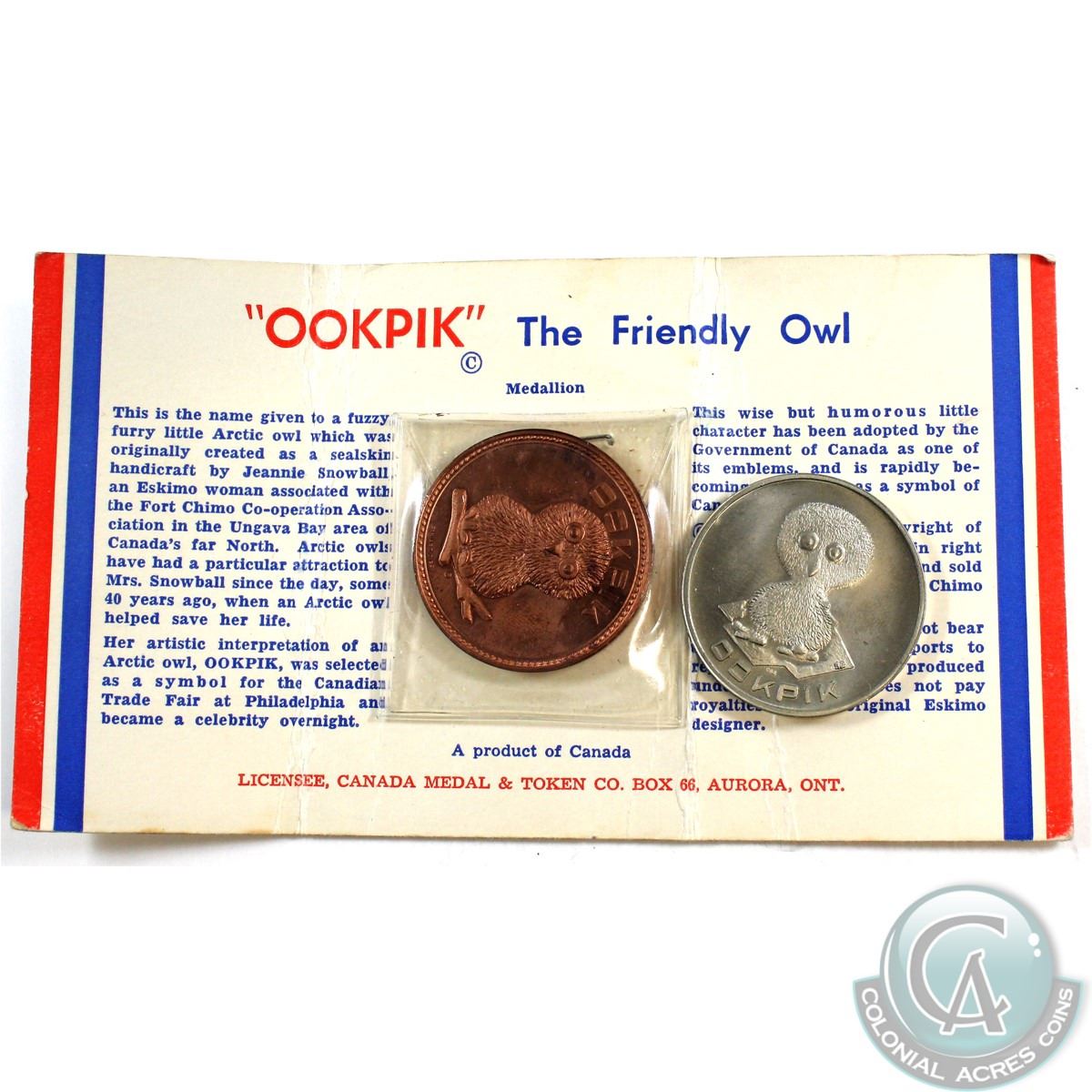 Pair of Ookpik the Friendly Owl Medallions. One of the Medals is Copper while the other appears to be Cupronickel. 2pcs