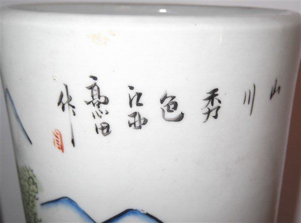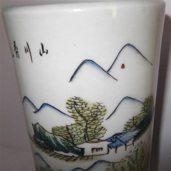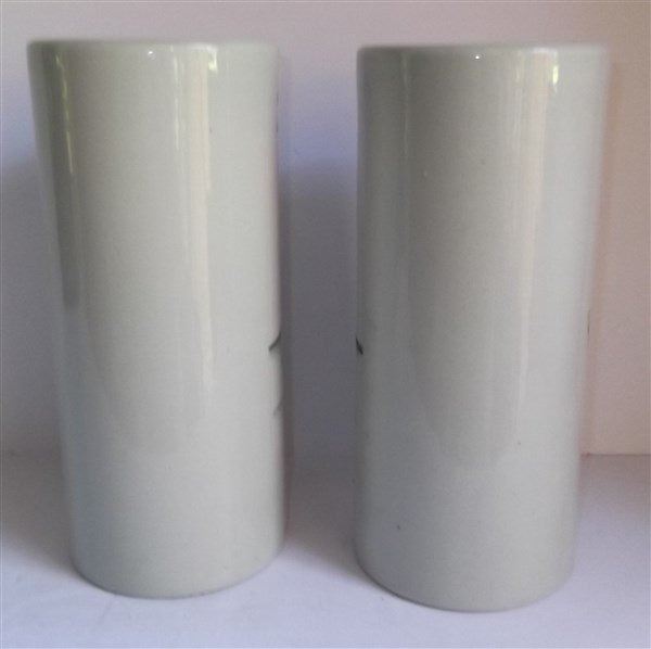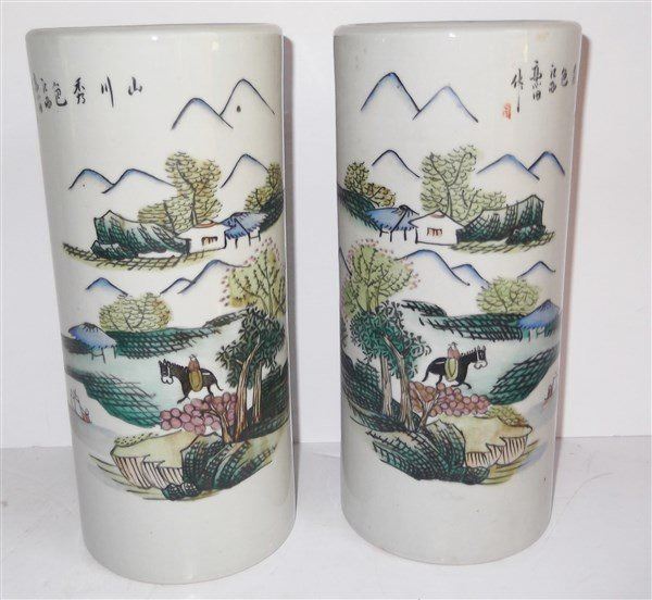 Pair of Oriental vases. Chip. 10 1/2 inches high x 4 1/2 inches wide.