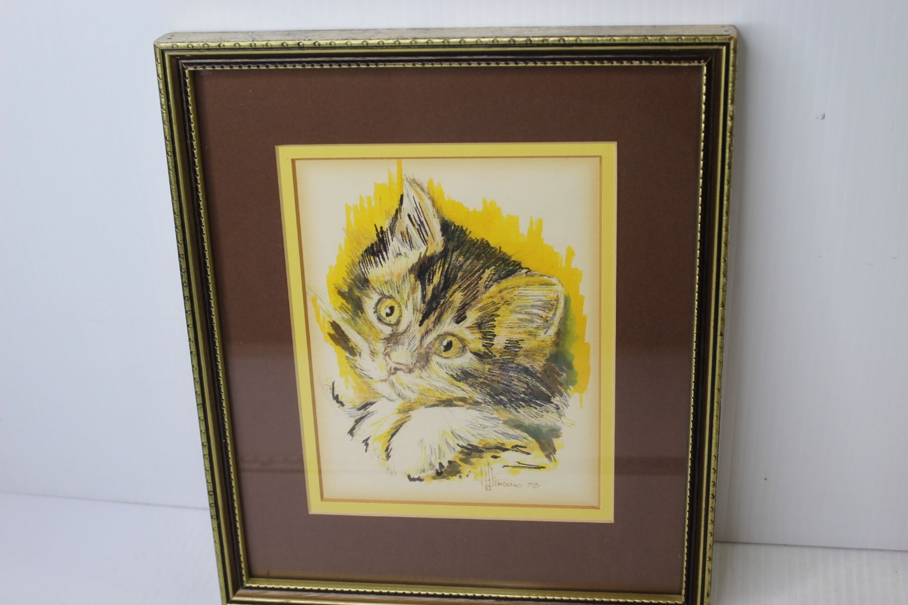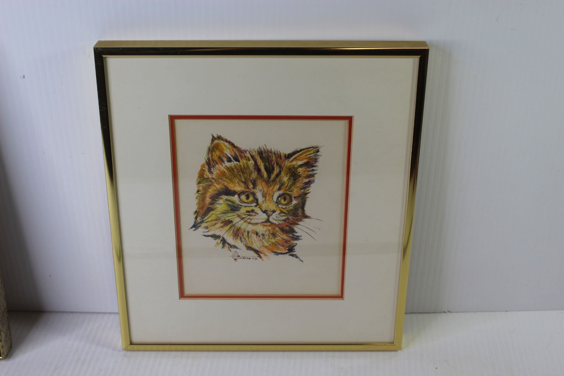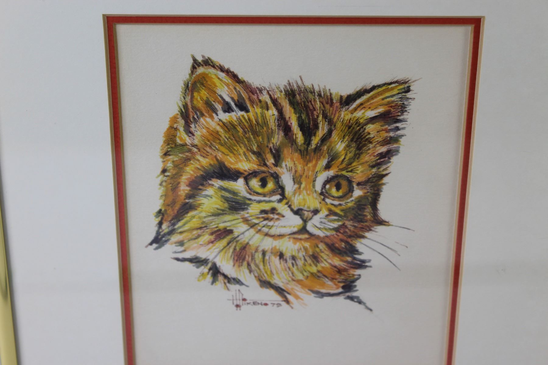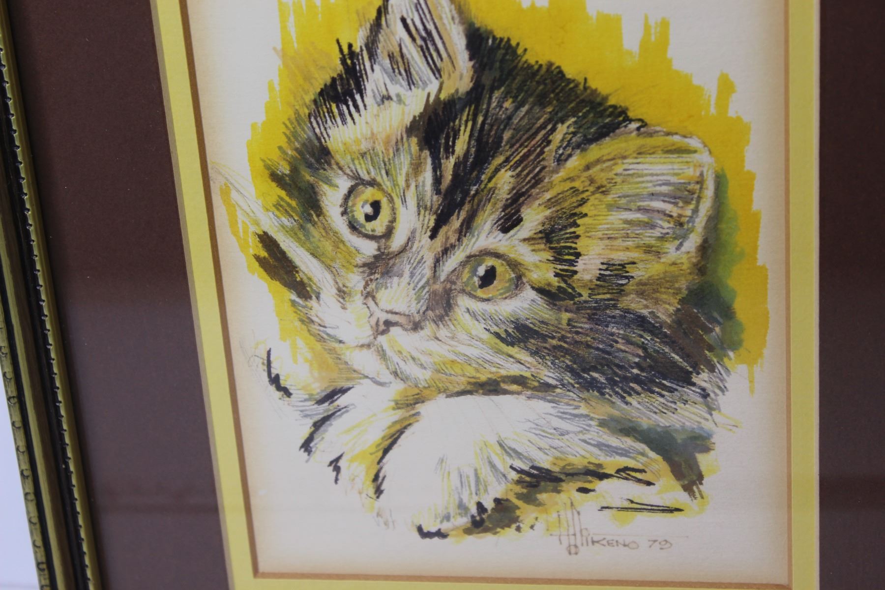 Pair of Original Cat Pictures - Signed H. Aiken 1979