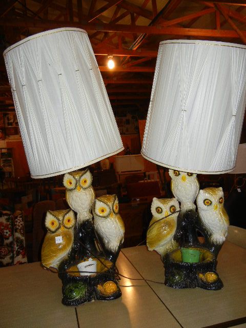 Pair of Owl Lamps, 3 Owls on Each Lamp