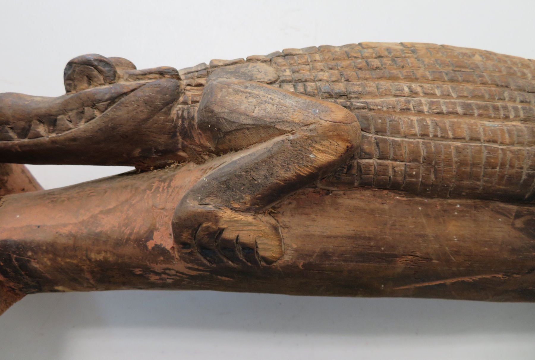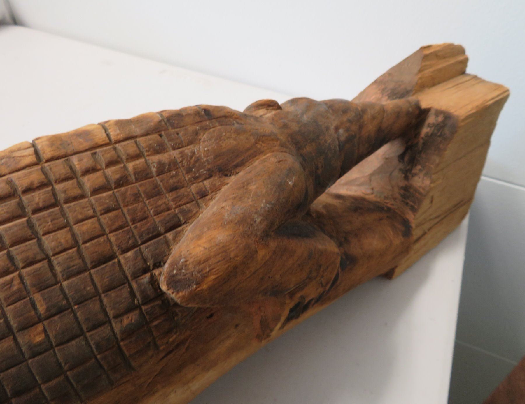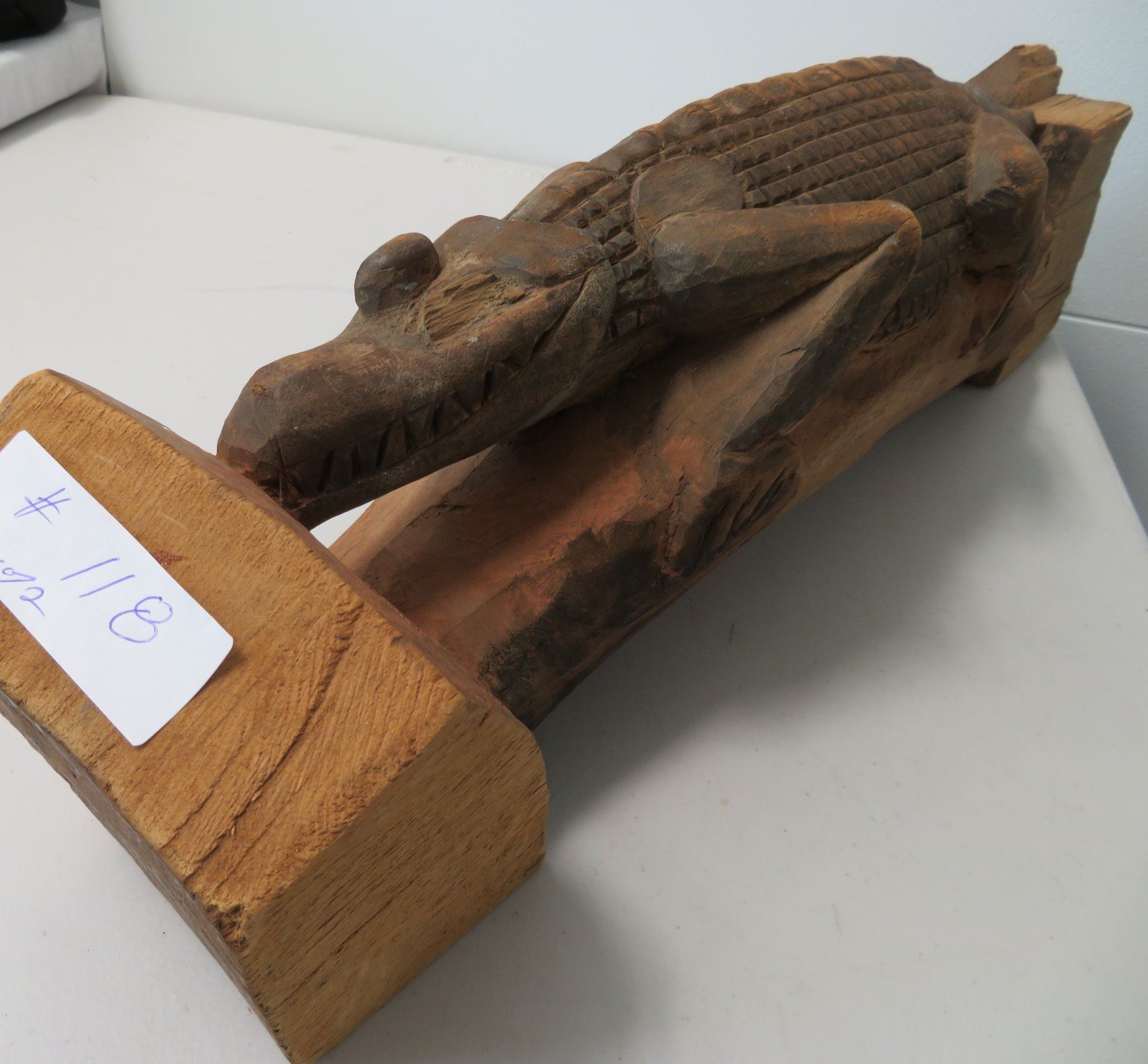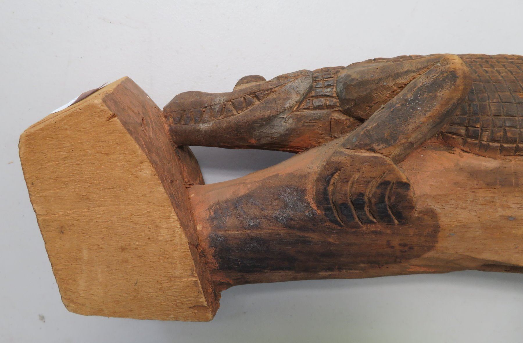 Pair of PNG Alligator Figures, c. 1940s. Made of wood, the items measure approx. 26" x 9" x 7" each. Papua New Guinea. Matched pair of carvings. Condition: As found, see images. Shipping: $65.00 USA estimate only, due to size and weight.