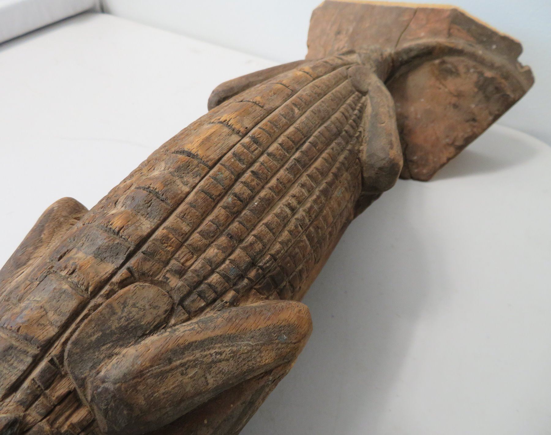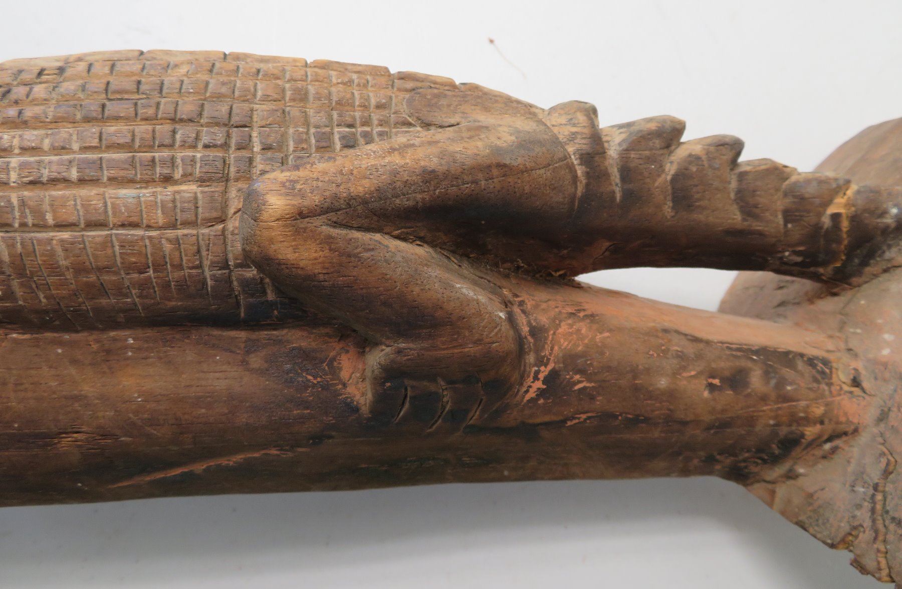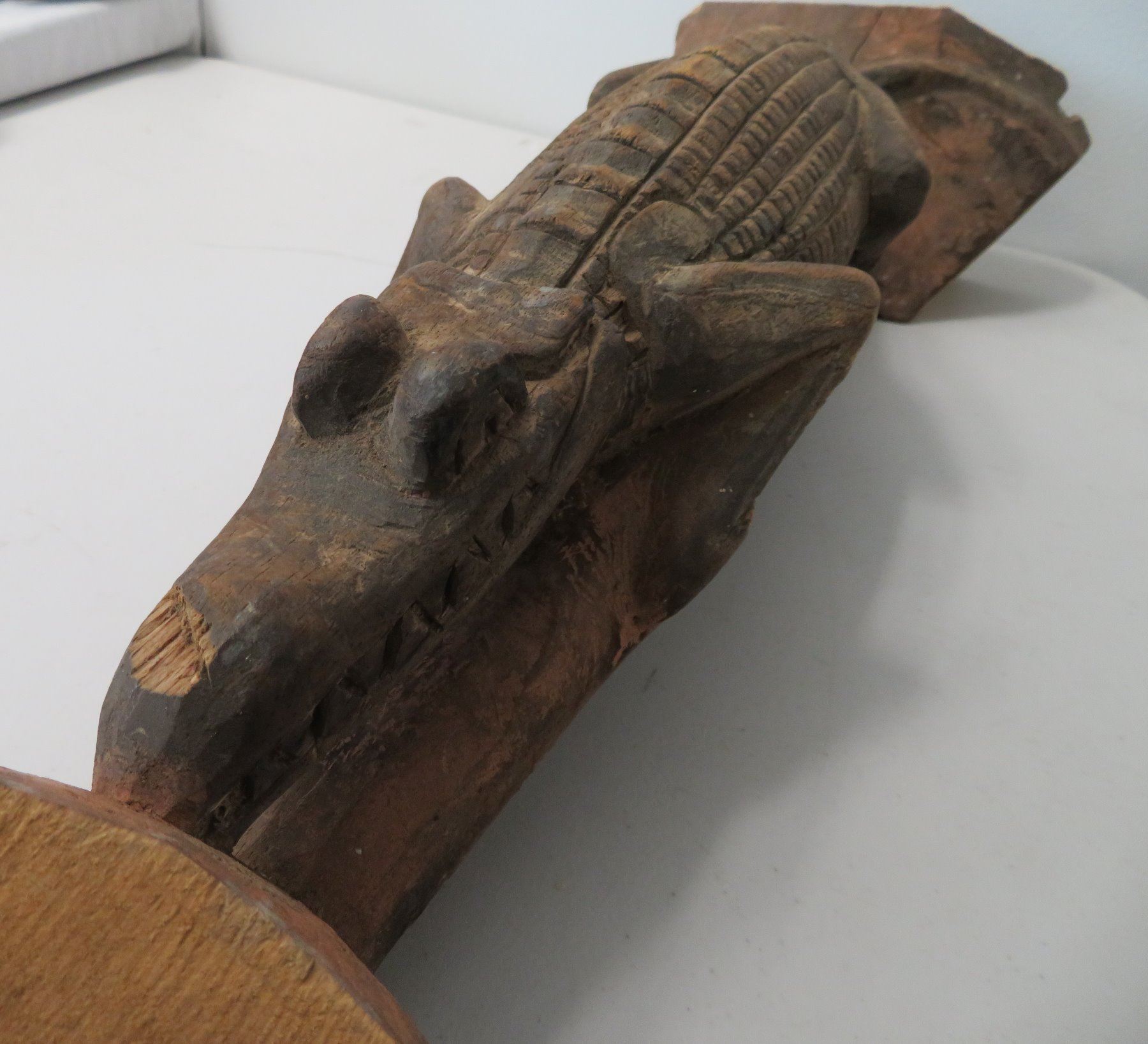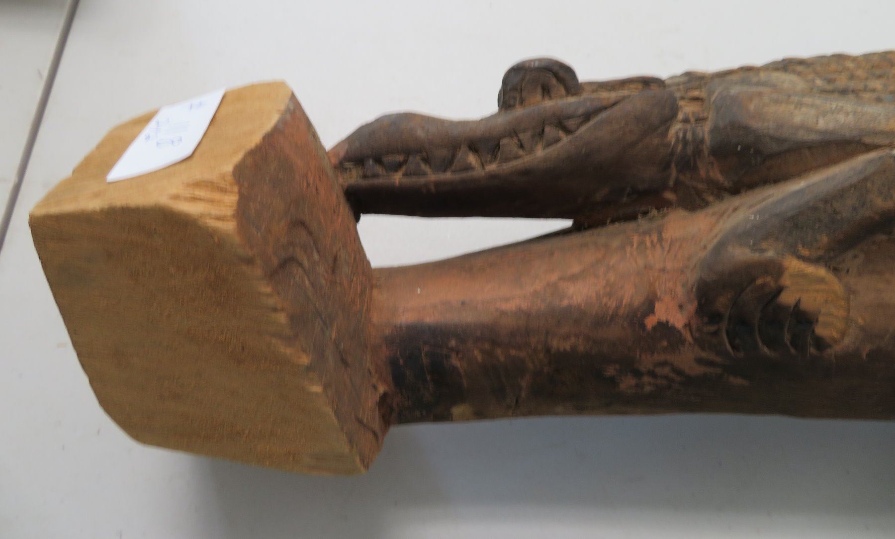 Pair of PNG Alligator Figures, c. 1940s. Made of wood, the items measure approx. 26" x 9" x 7" each. Papua New Guinea. Matched pair of carvings. Condition: As found, see images. Shipping: $65.00 USA estimate only, due to size and weight.