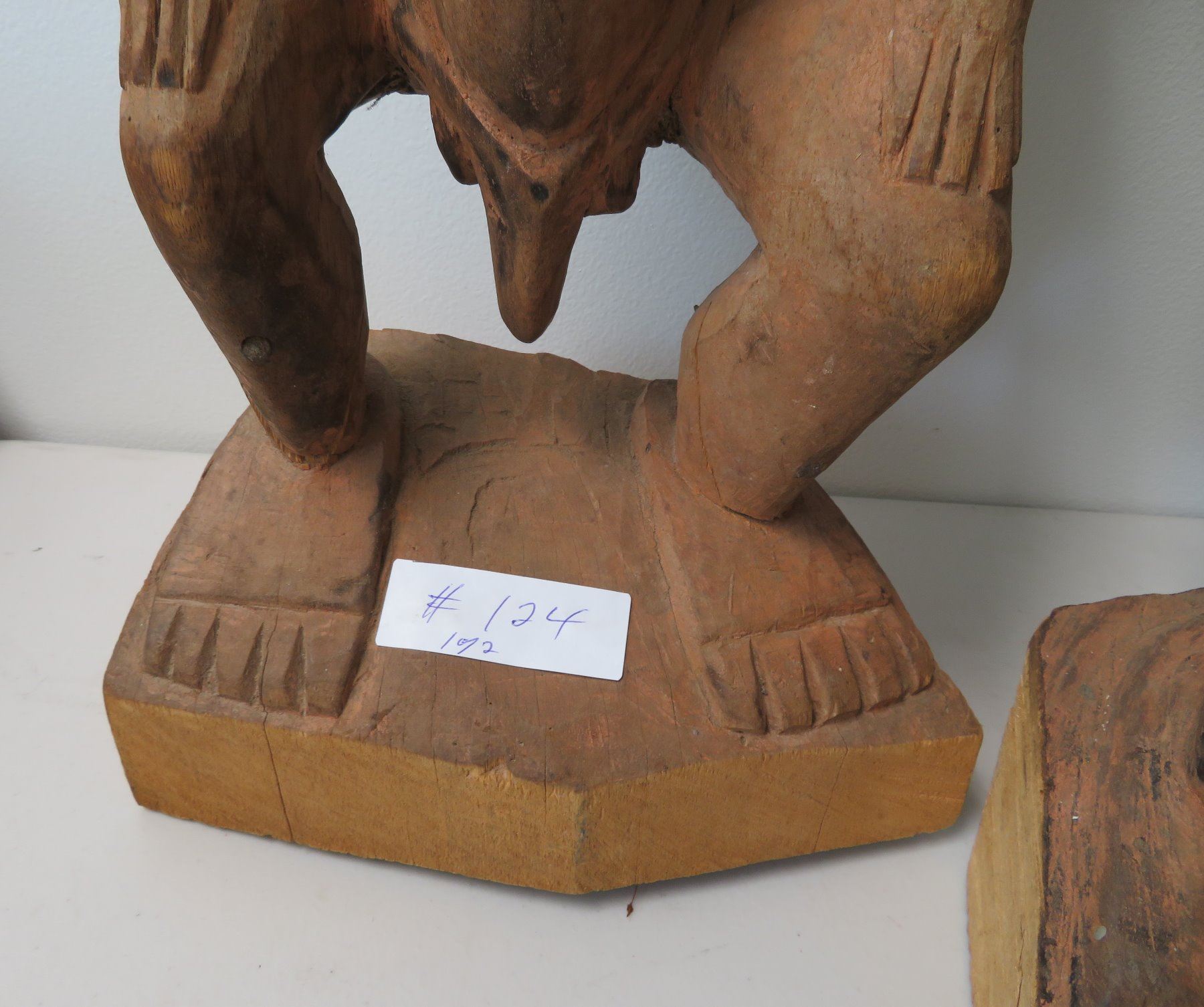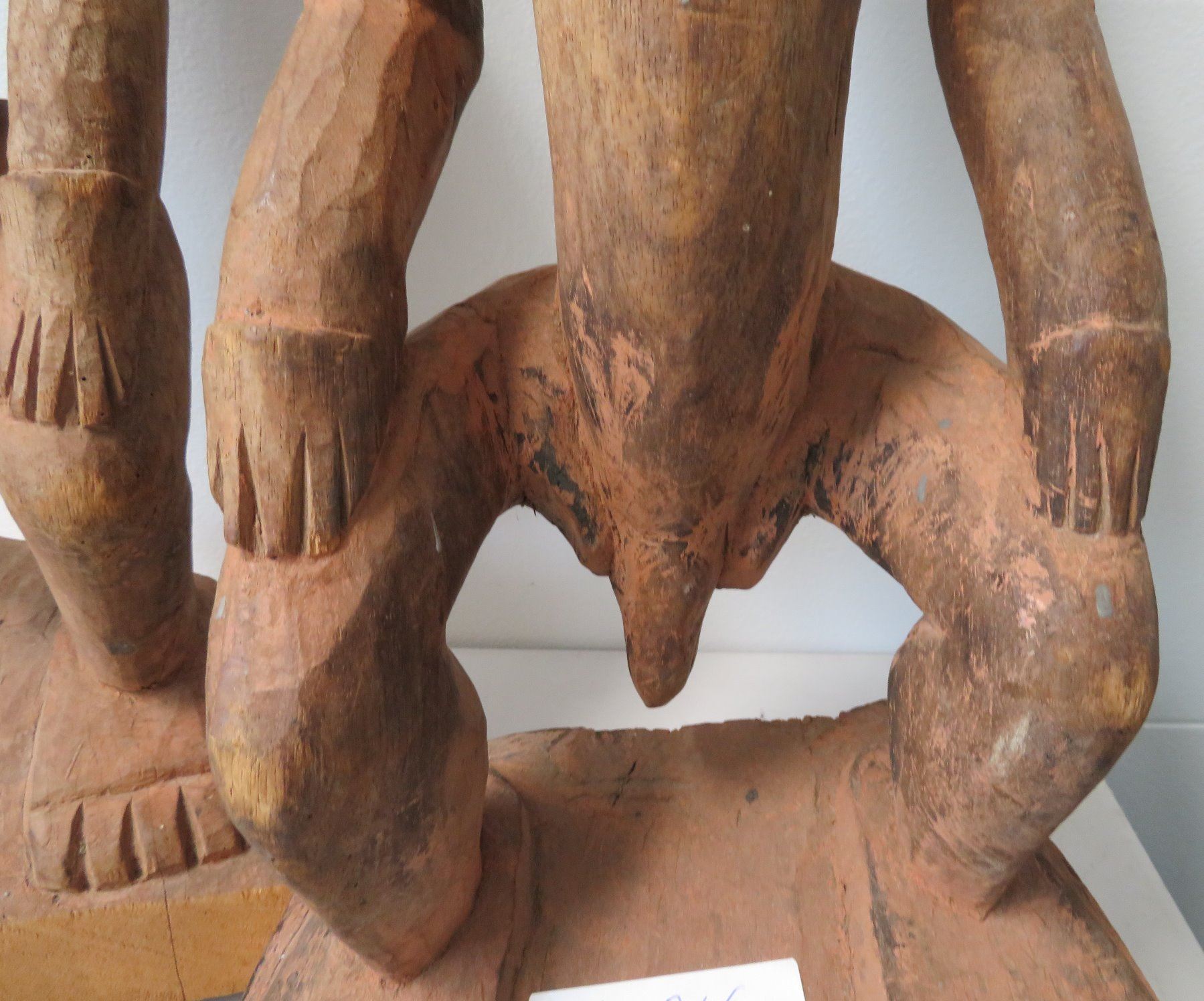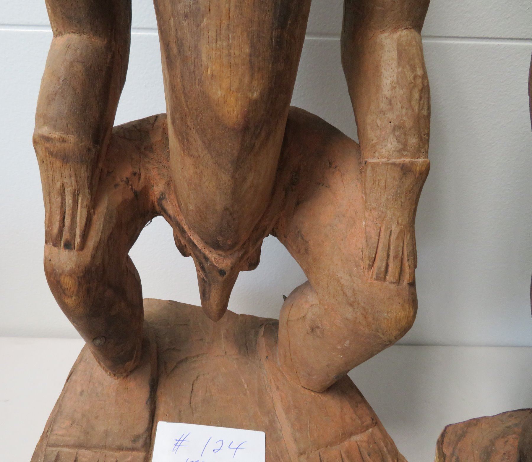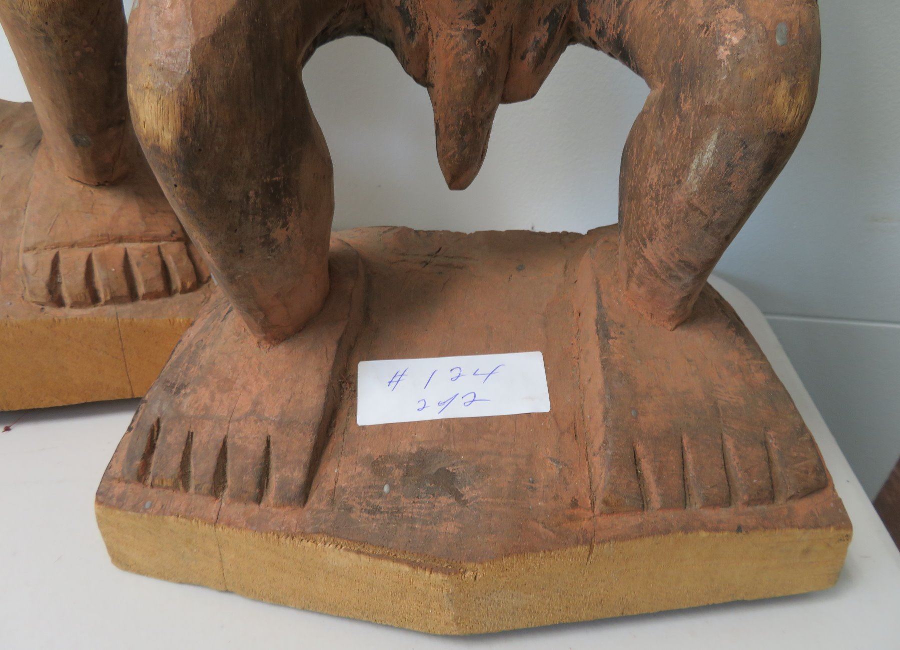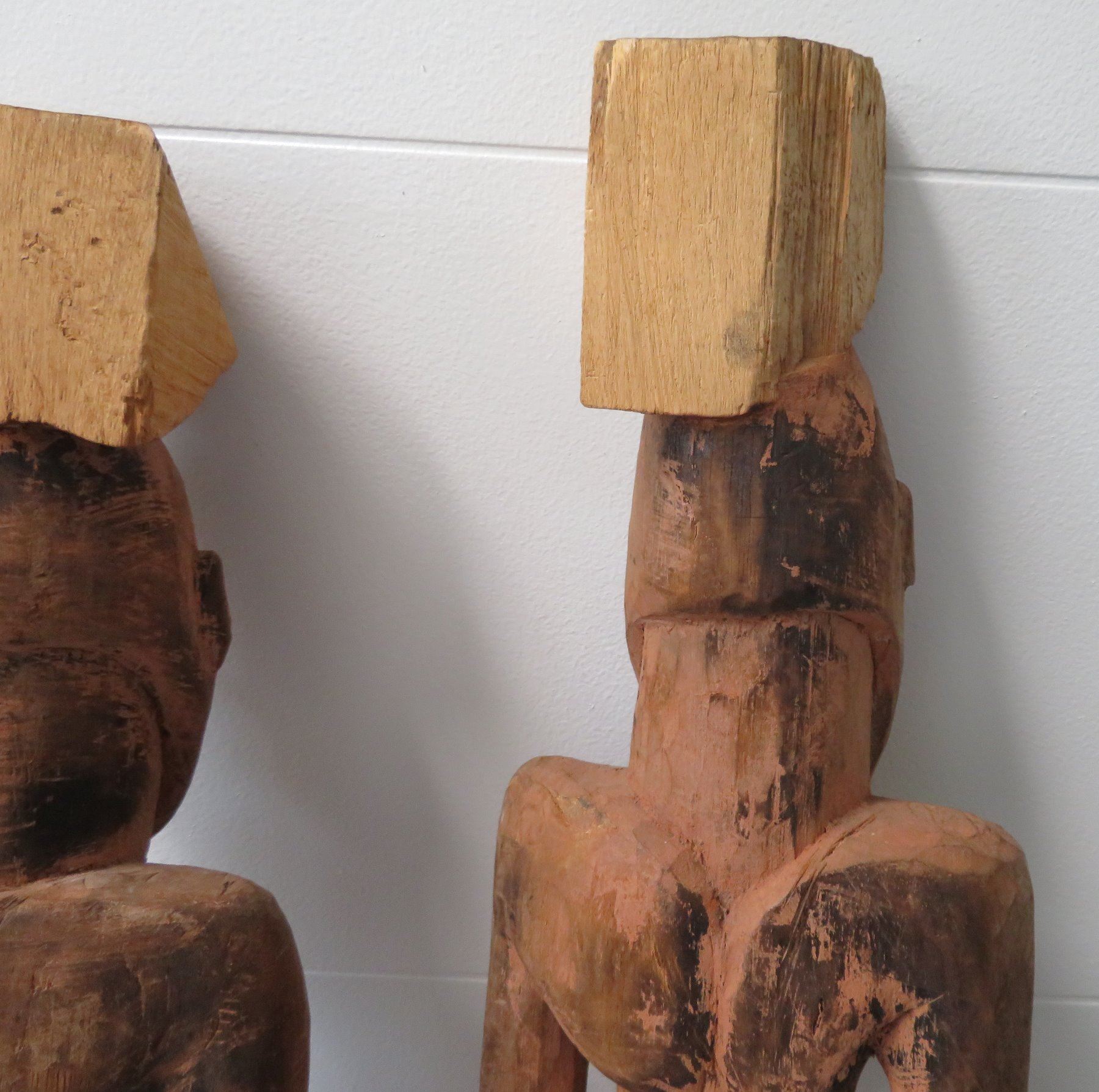 Pair of PNG Human Figures, c. 1940s. Made of wood, the items measure approx. 28" x 10" x 6" each. Papua New Guinea. Matched pair of carvings. Condition: Good, nick on nose, see images. Shipping: $65.00 USA estimate only, due to size and weight, w/insurance and signature.