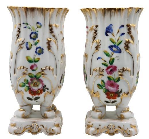 Pair of Painted Porcelain Flower Vases.