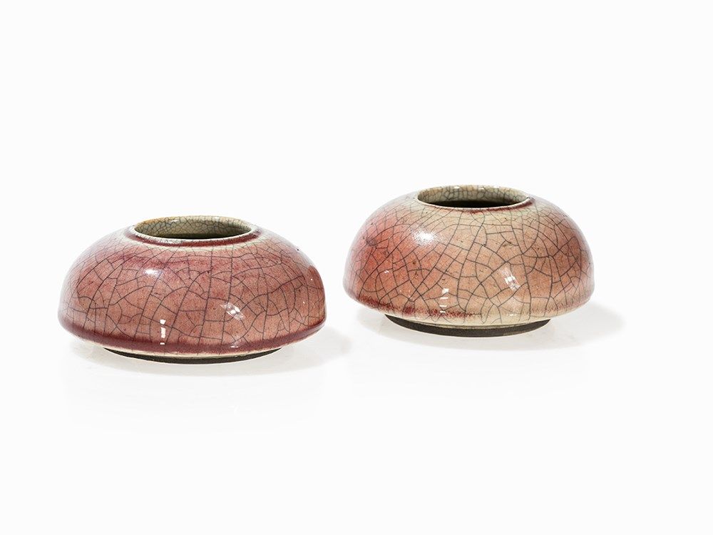 Pair of Peachbloom Brush Washer with Crackled Glaze, Kangxi