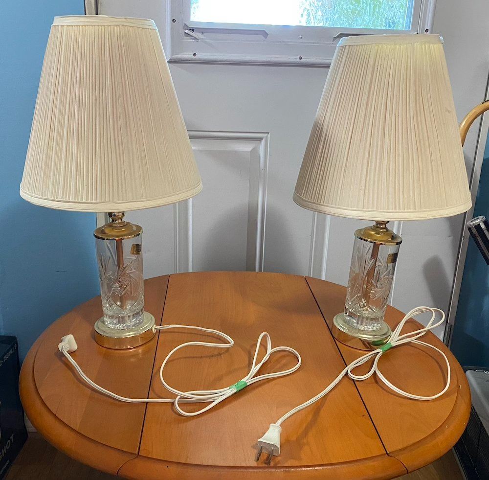 Pair of Pin Wheel Lead Crystal 24% Lead Oxide Hand-Cut Lamps - Working
