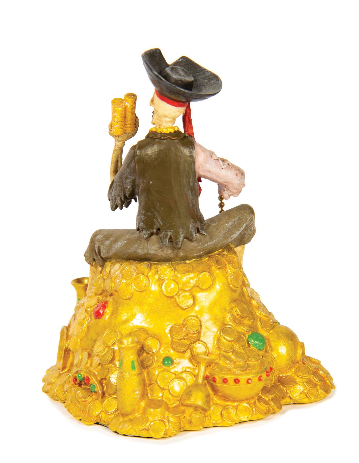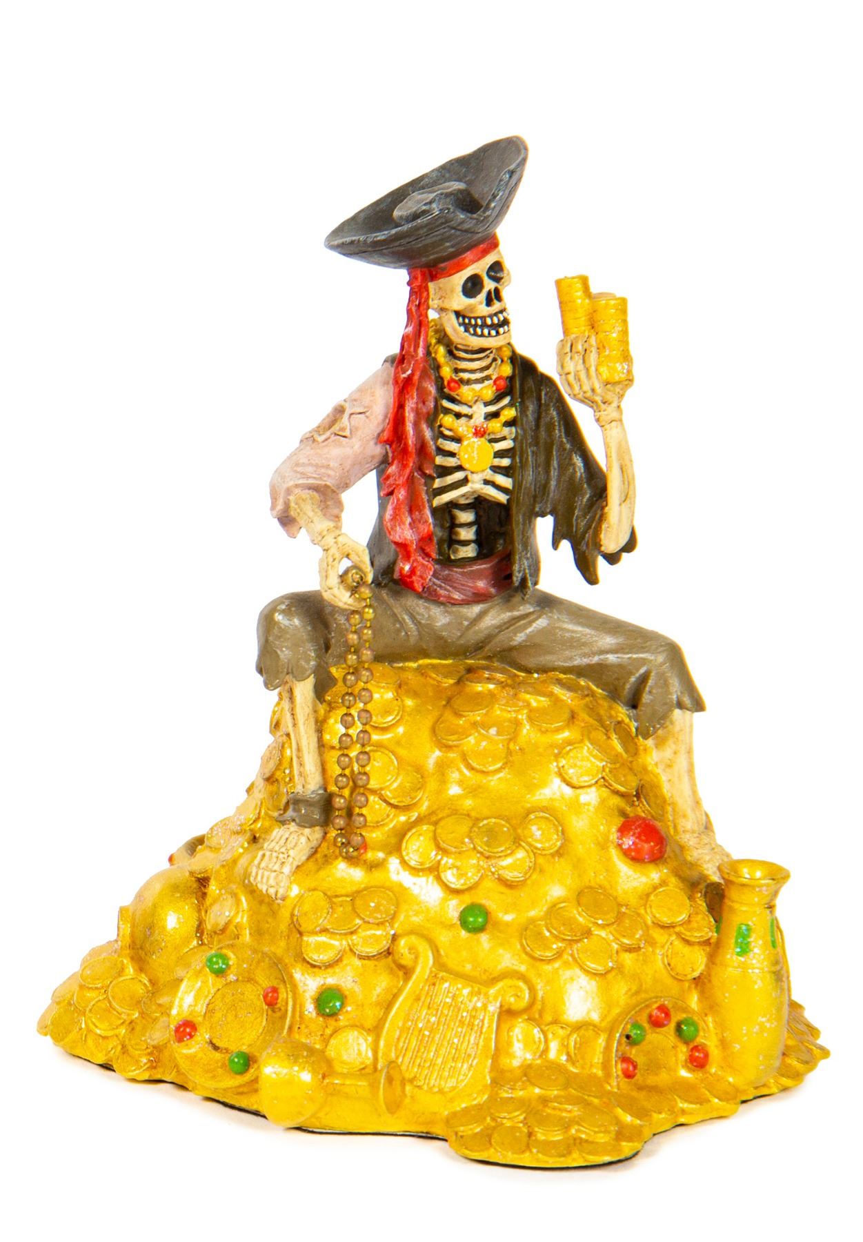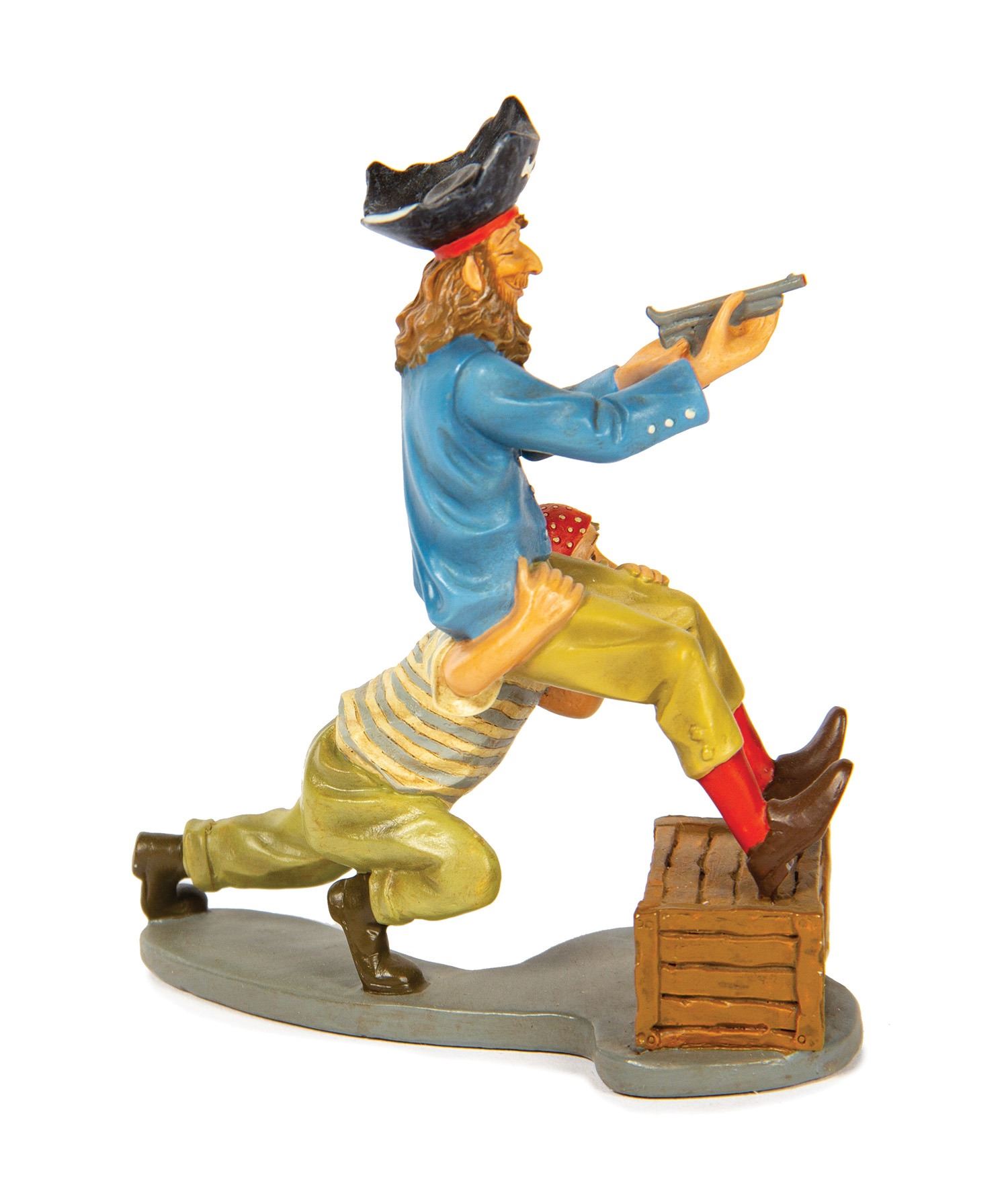 (Disneyland, c.2000s) A pair of limited edition Pirates of the Caribbean figures based on the popular characters seen throughout the attraction. The pair includes the skeleton on a mound of treasure as well as a figure of a pair of pirates. The figures measure between 3.5" and 4" tall and are in very good condition with minor wear to the original windowed box.
