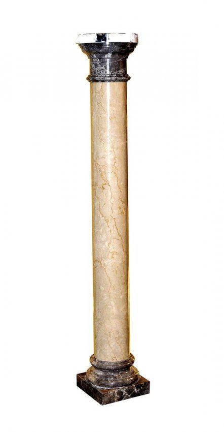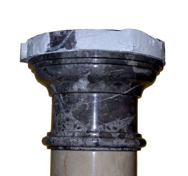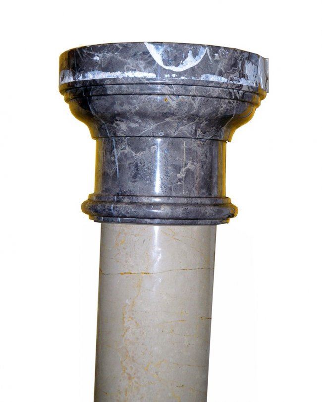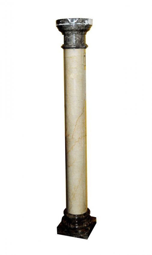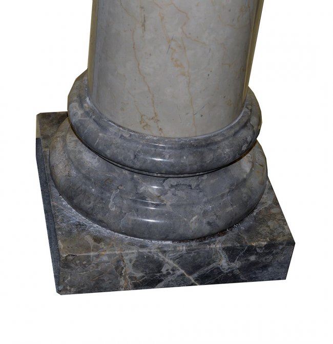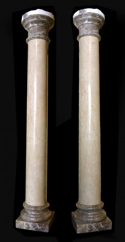Pair of grey and creme marble columns. [76" H x 12" Dia at top]. Option to purchase eight additional pairs. Columns located on the north shore of Long Island.