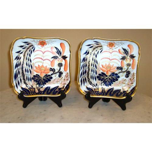 Pair of Coalport square dishes in the Imari Money Tree pattern from