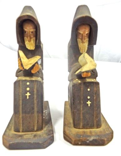 Pair of Primitive Carved Monks holding Book, made in Mexico - Vintage