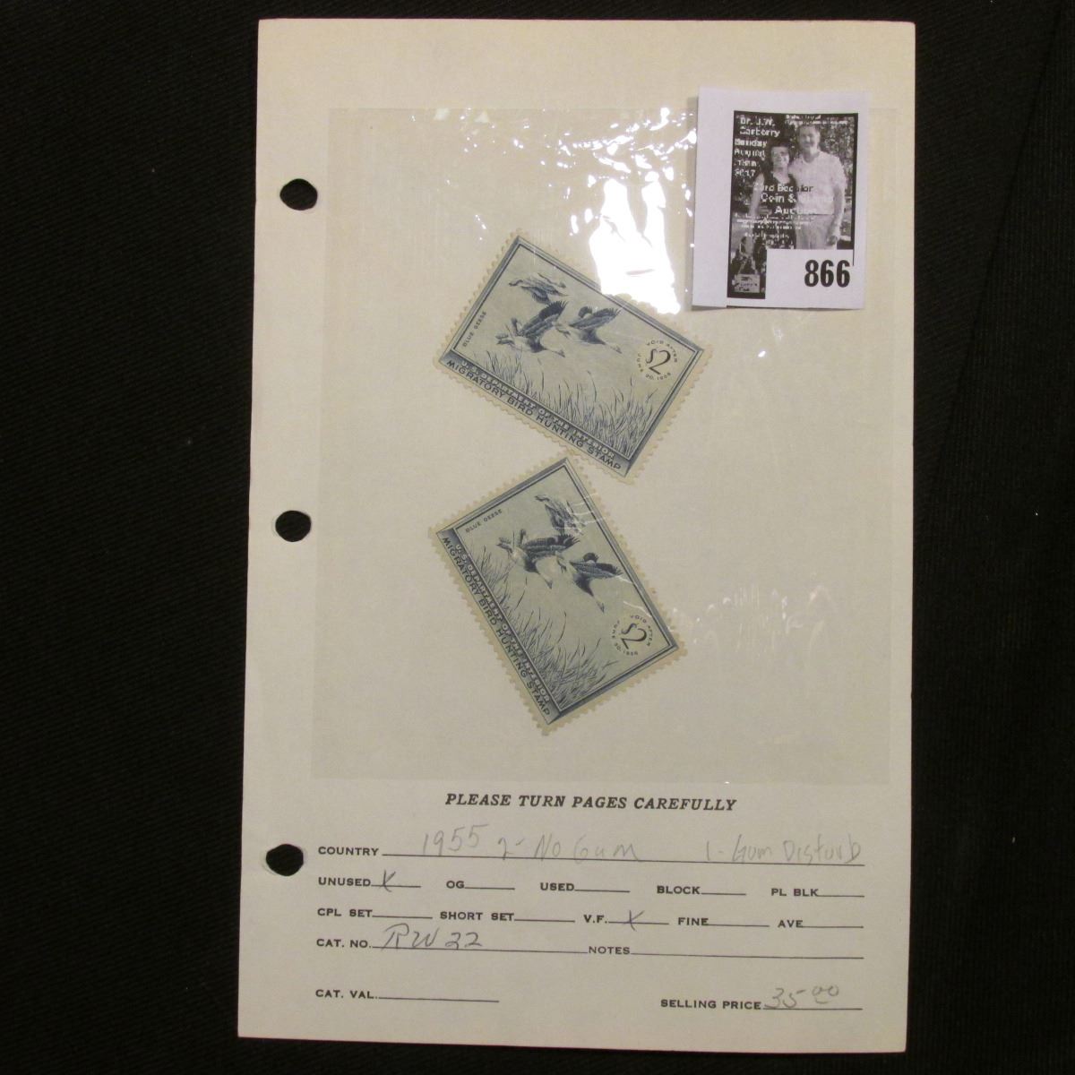Pair of RW22 Federal Migratory Bird Hunting and Conservation Stamp, one with disturbed Gum, other with no gum, unsigned.