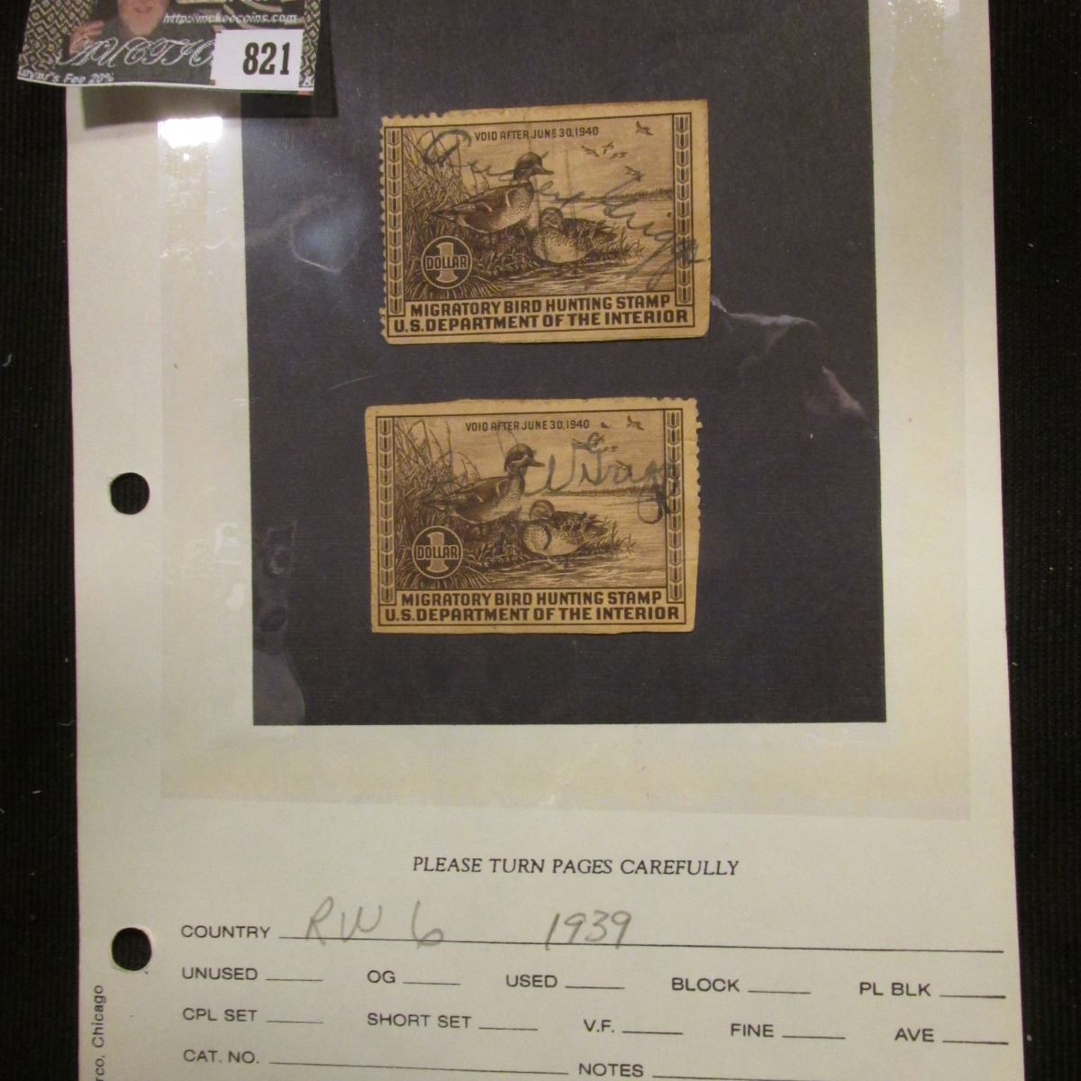 Pair of RW6 1939 Signed U.S. Department of Agriculture Migratory Bird Stamps.