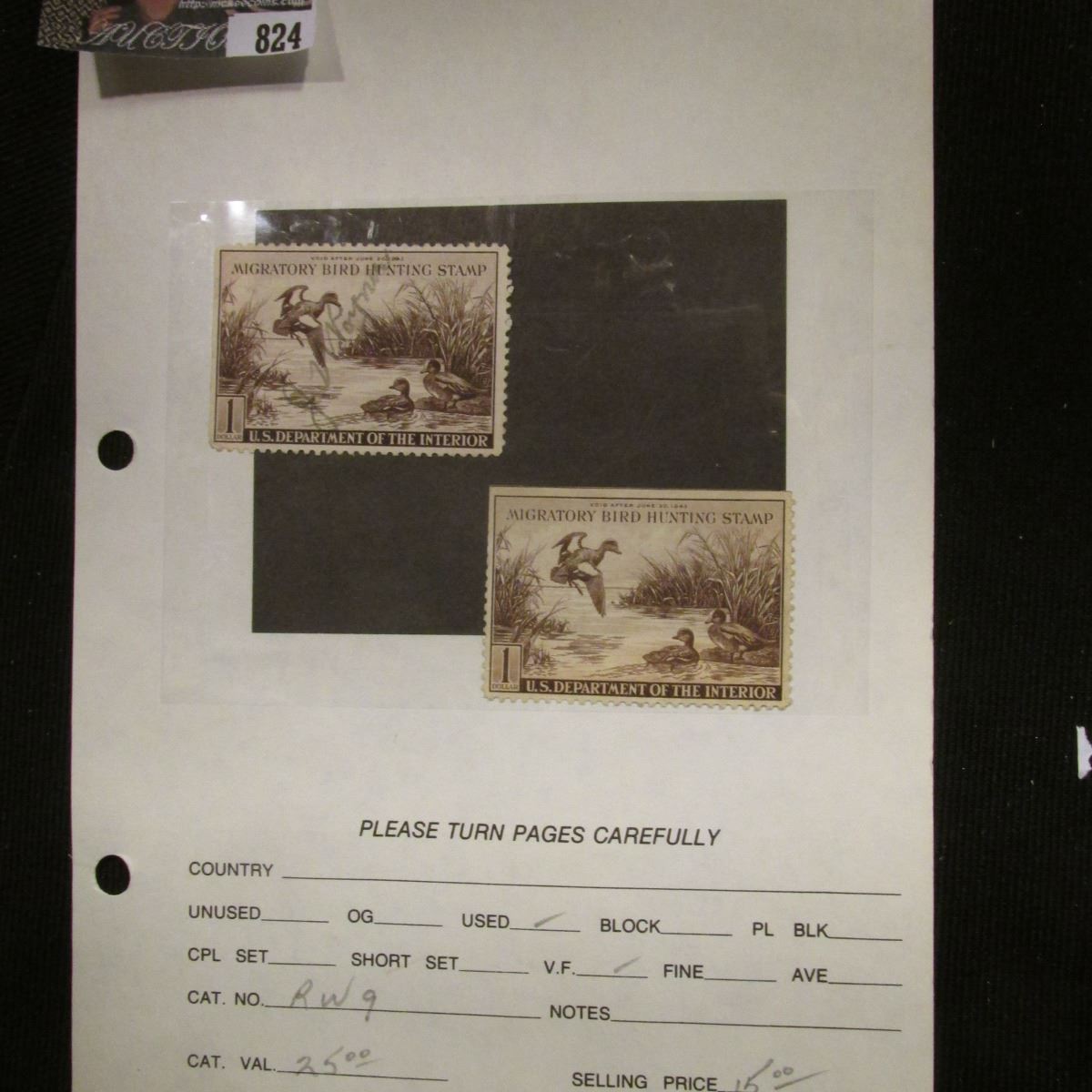 Pair of RW9 1942 U.S. Department of Agriculture Migratory Bird Stamps. One used & one without signature. VF.