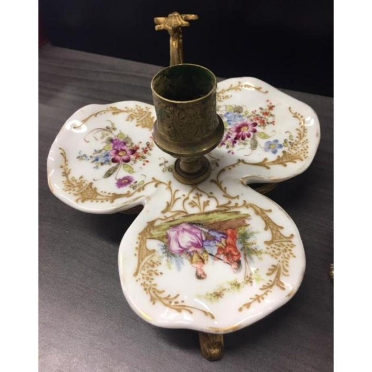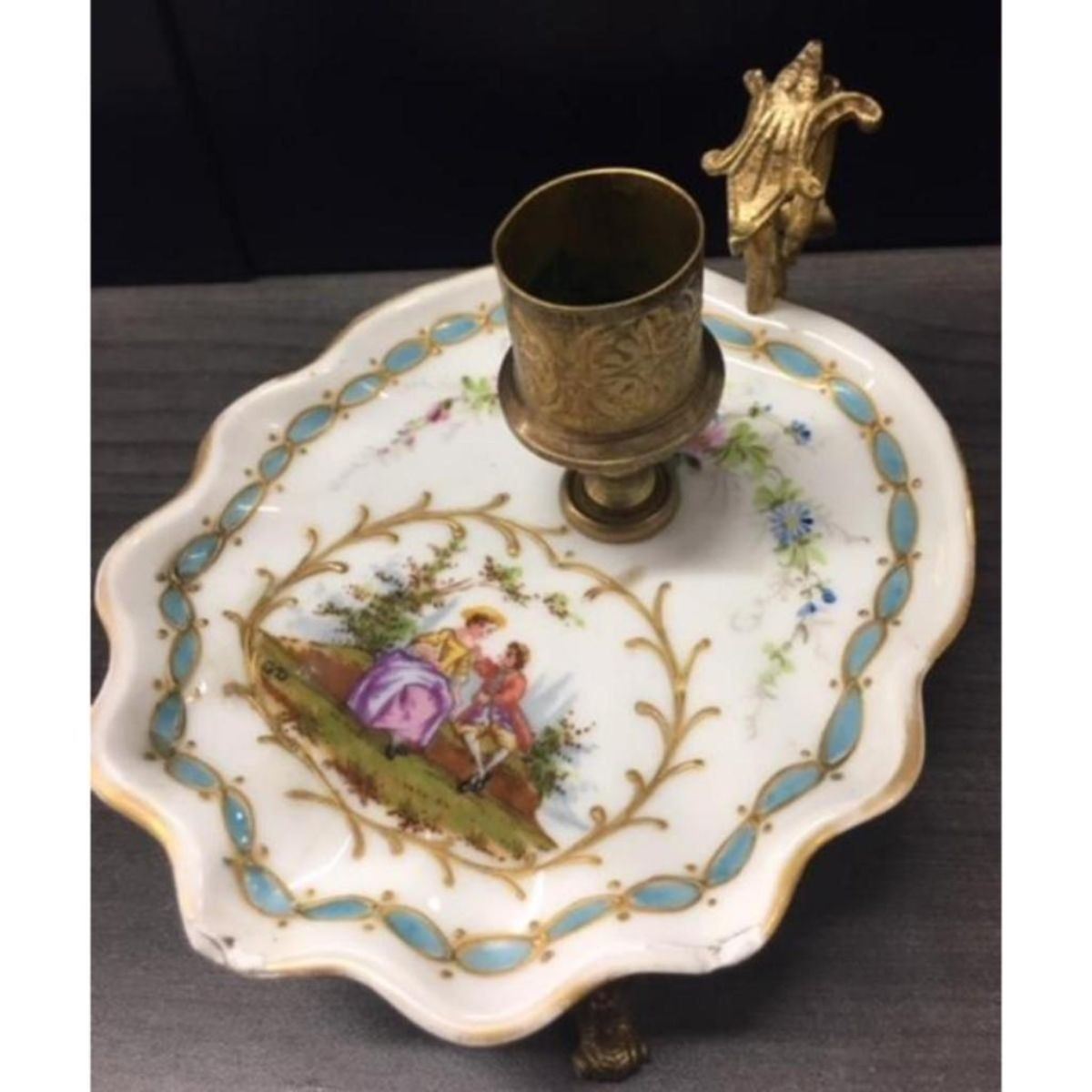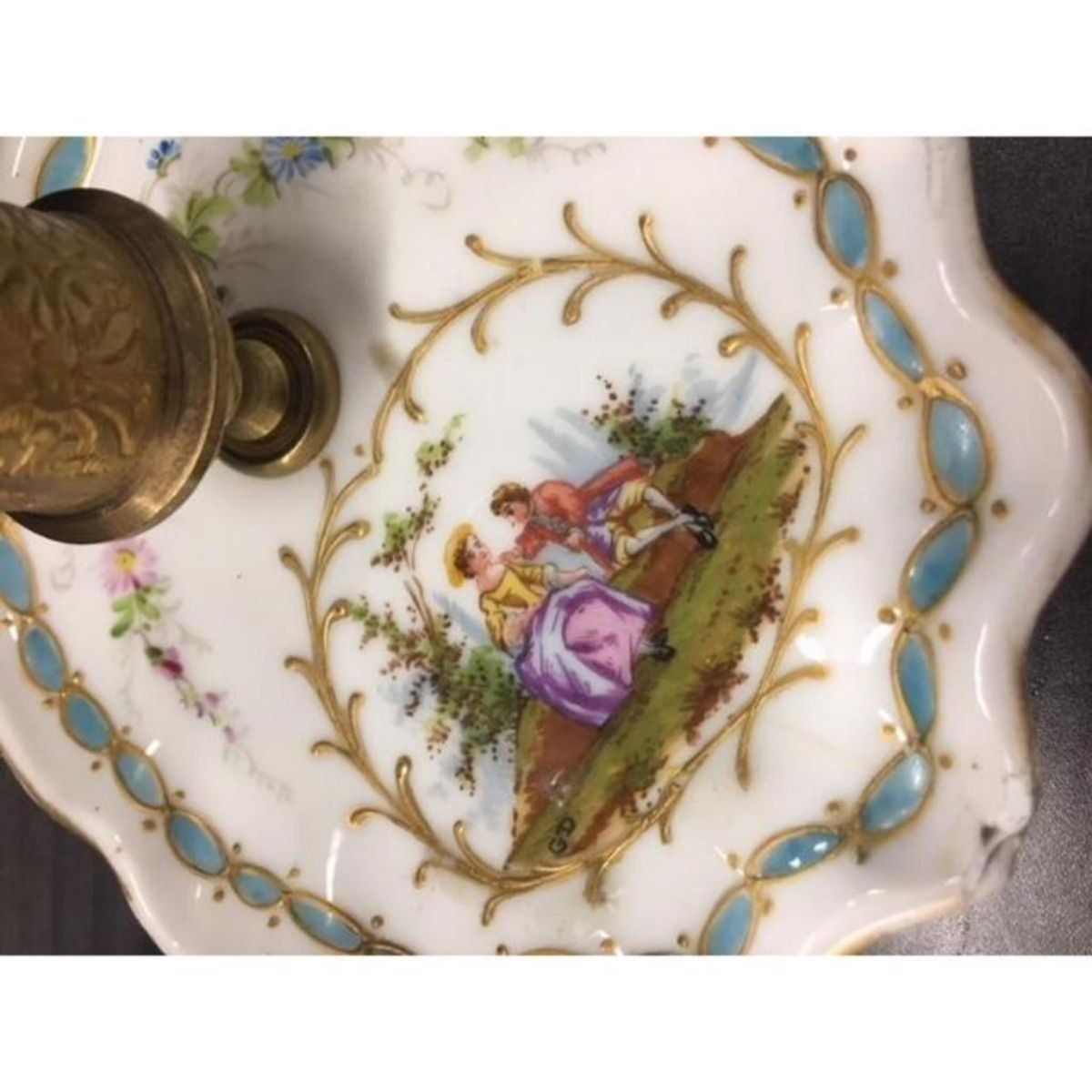 Pair of Rare Old French Painted Porcelain On Guilt Candle Holders. Oval Shape has 2 Chips. minor age wear on other. See Pictures For Further Inspection. - All items may be shipped or picked up locally within one week of sale. We will provide shipping estimates to the winning bidders or winning bidders may arrange their own shipping.