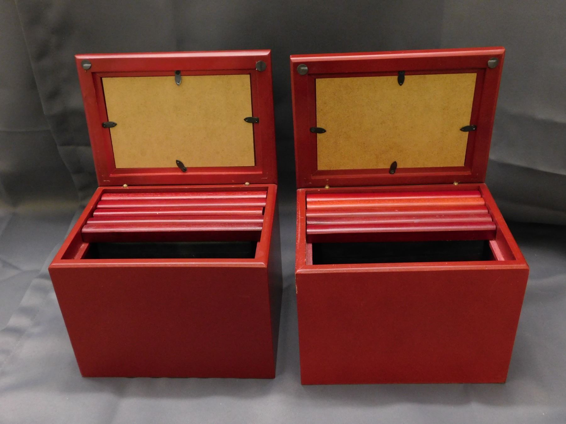 each mini photo album holds 24 photos, so these 2 boxes can store a total of 240 photos. Lid has a clear glass area that can display another photo.