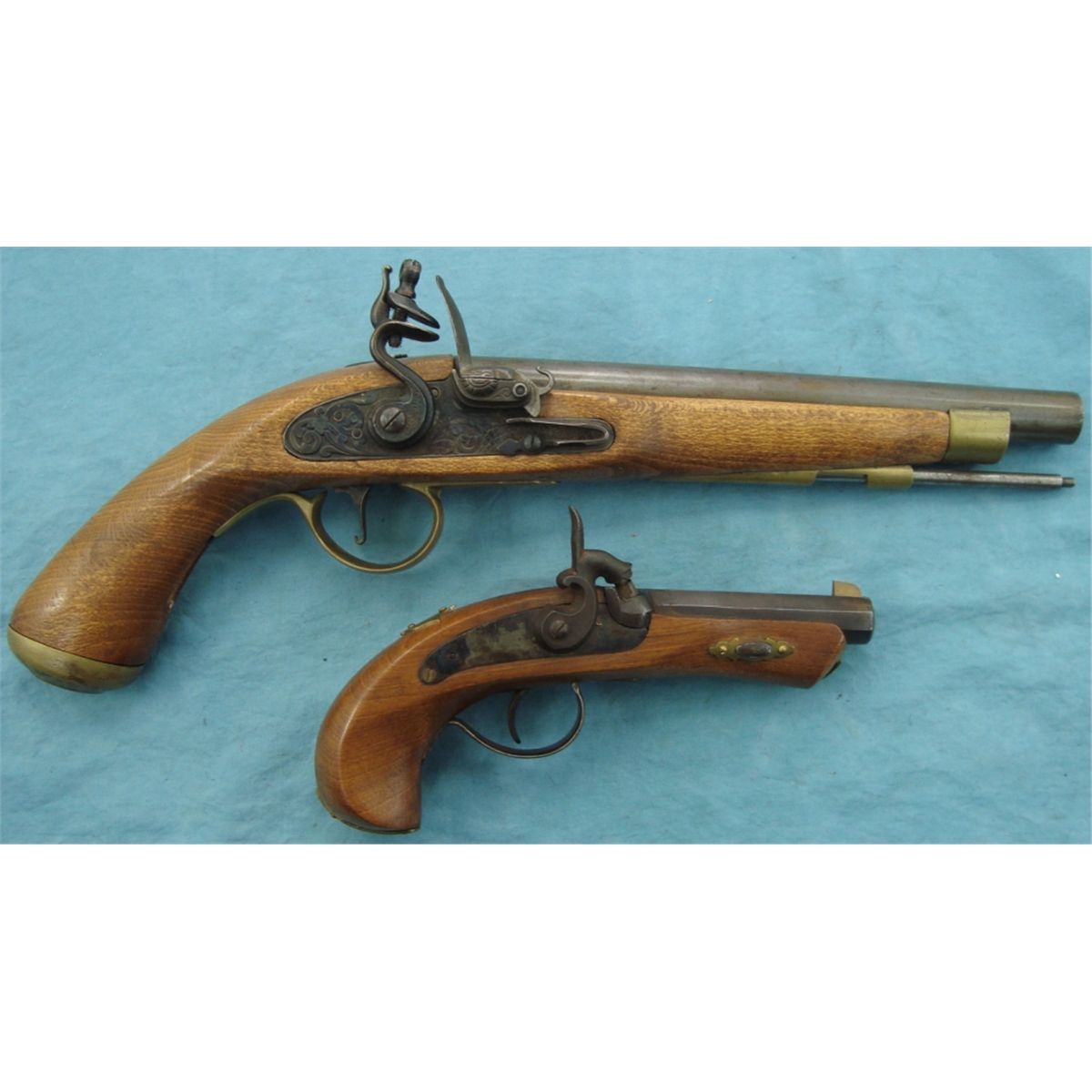 #NSN; Antique Black Powder. Flintlock Model approx. 45 cal. & a 41 cal. Derringer. Both in good condition.