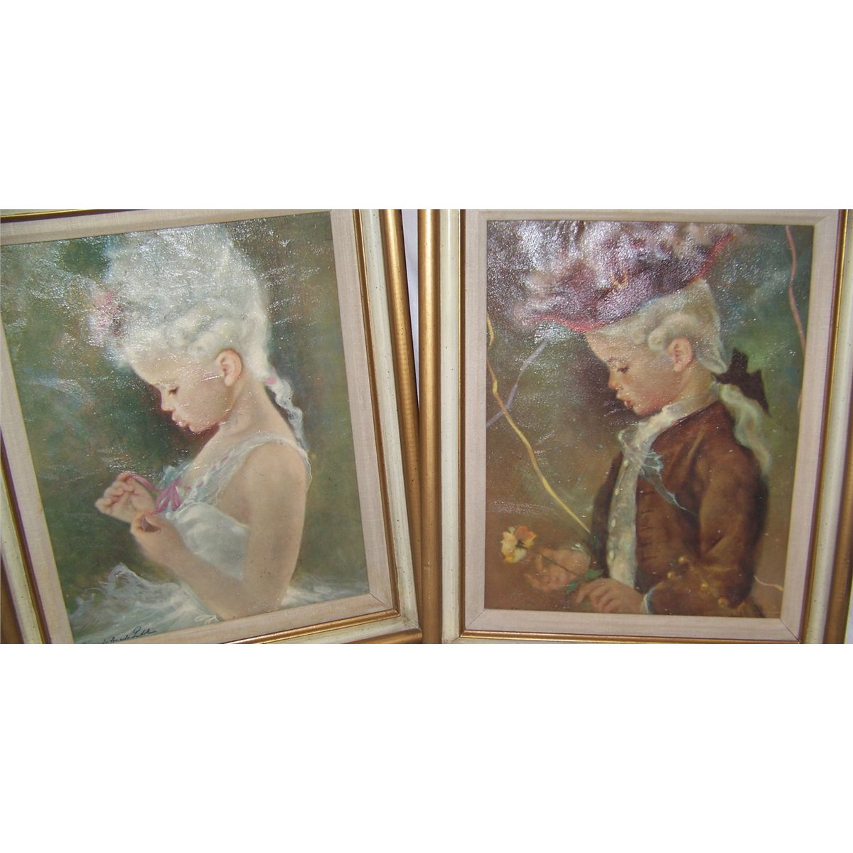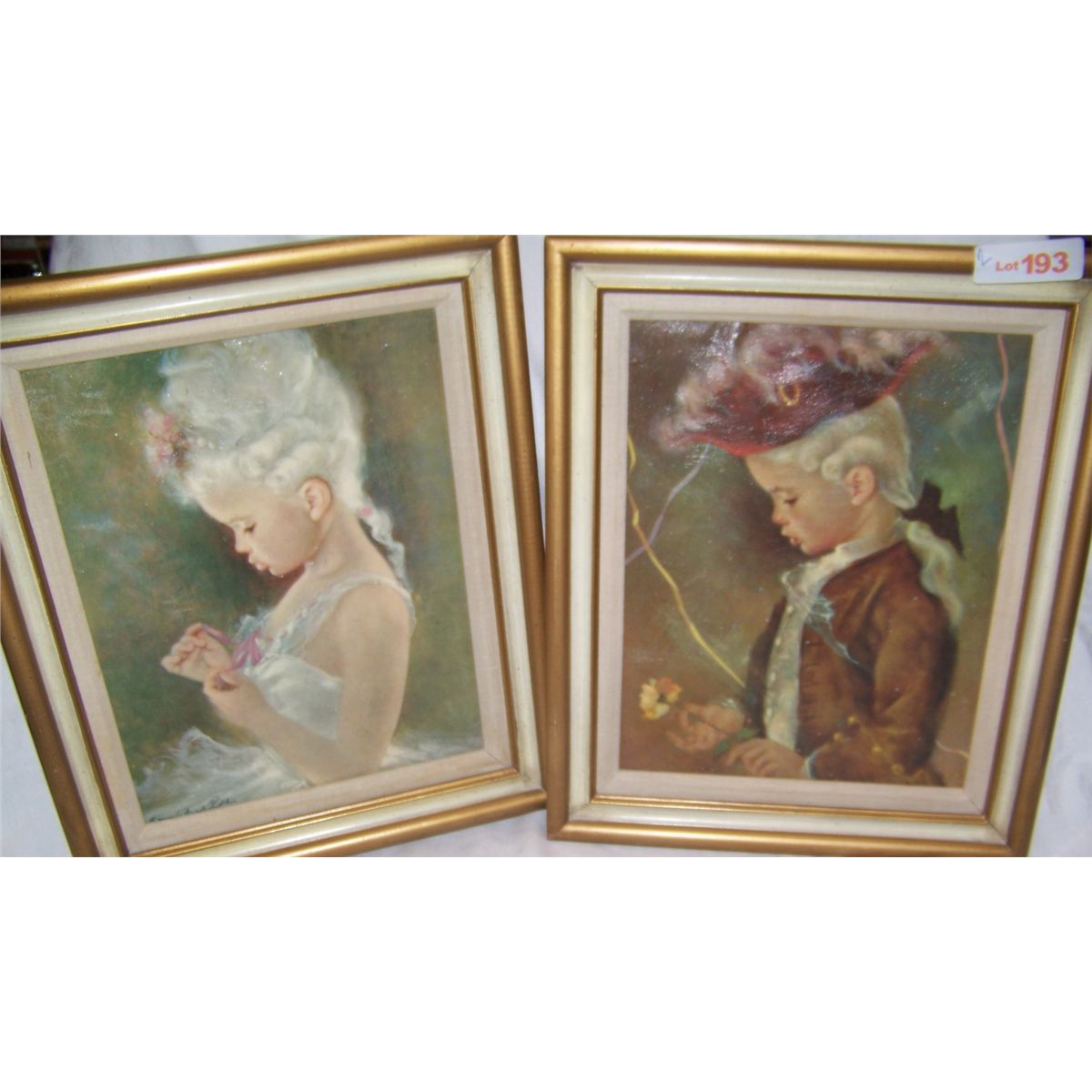 Pair of Reproduction paintings of Boy & Girl in Fine Victorian dress