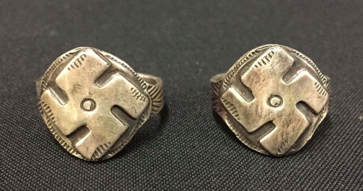 Maker: Red Rabbit Trading Co., Tucson, AZ. Approx. Age: Contemporary. Size: 9.5 and 11. Collectively they weigh 13.9g. Condition: Good. Additional Info: Handmade, sterling silver, retro style rings. Please look closely at the pictures - they are an important part of our description. Shipping: There will be a $5 handling / packaging fee for shipping this lot. The actual cost of postage will be added on top of that.