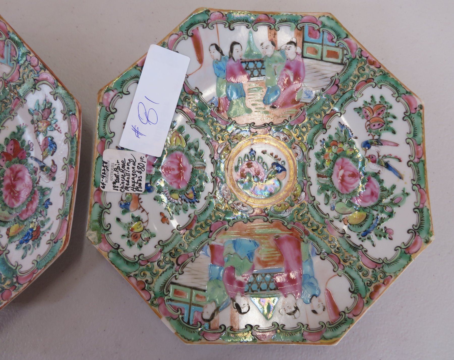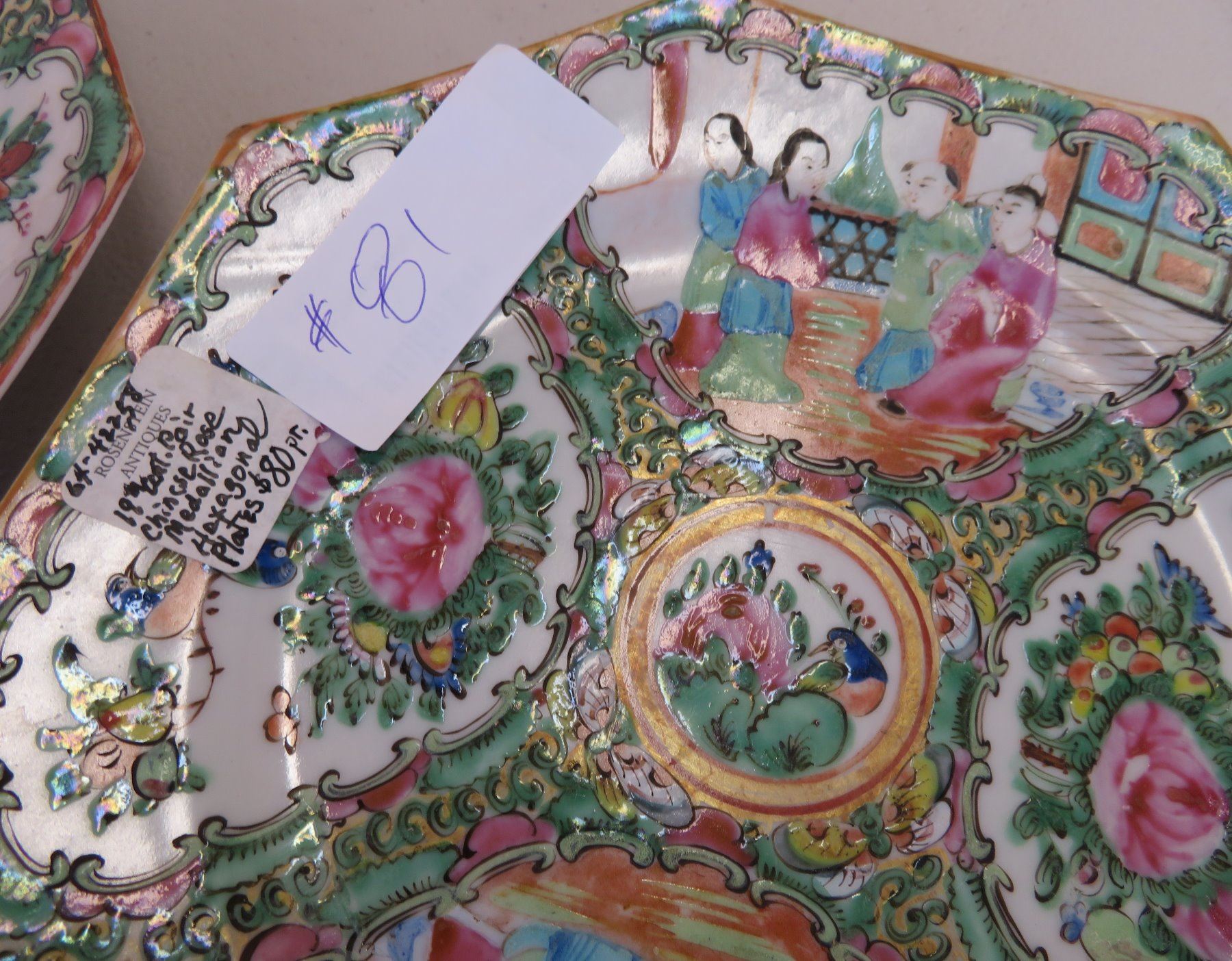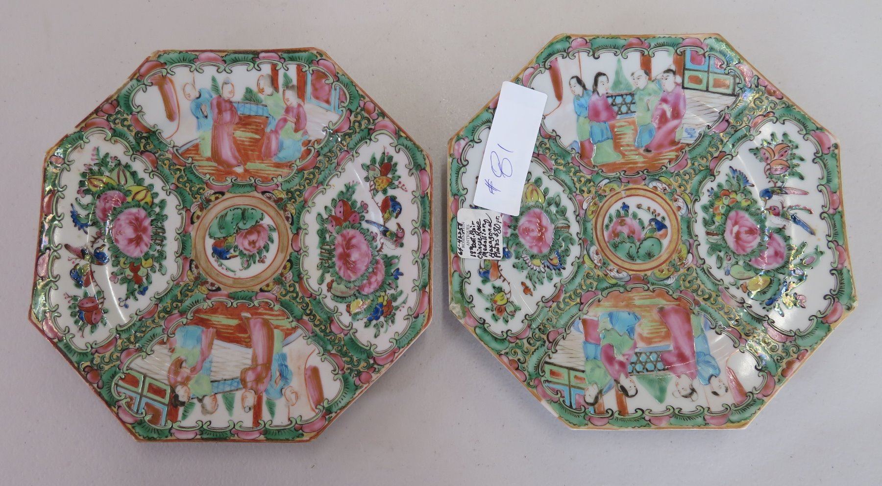 Pair of Rose Medallion Plates, antique items. Made of porcelain, the items measure 7 1/2" x 1". China. Condition: Good, see images. Shipping: $24.50 w/insurance and signature, double-boxed.
