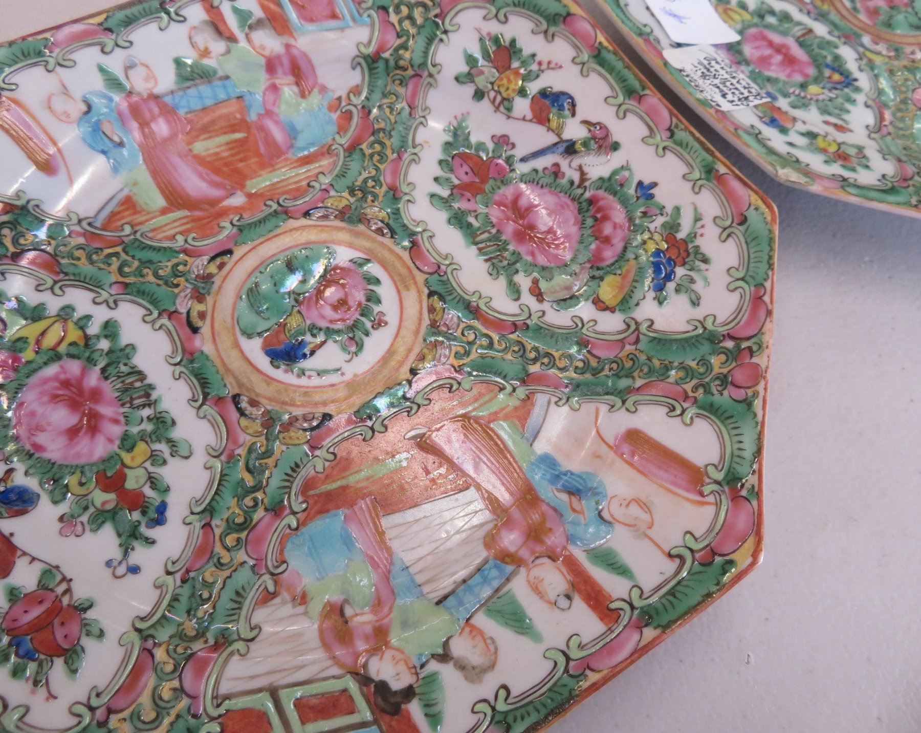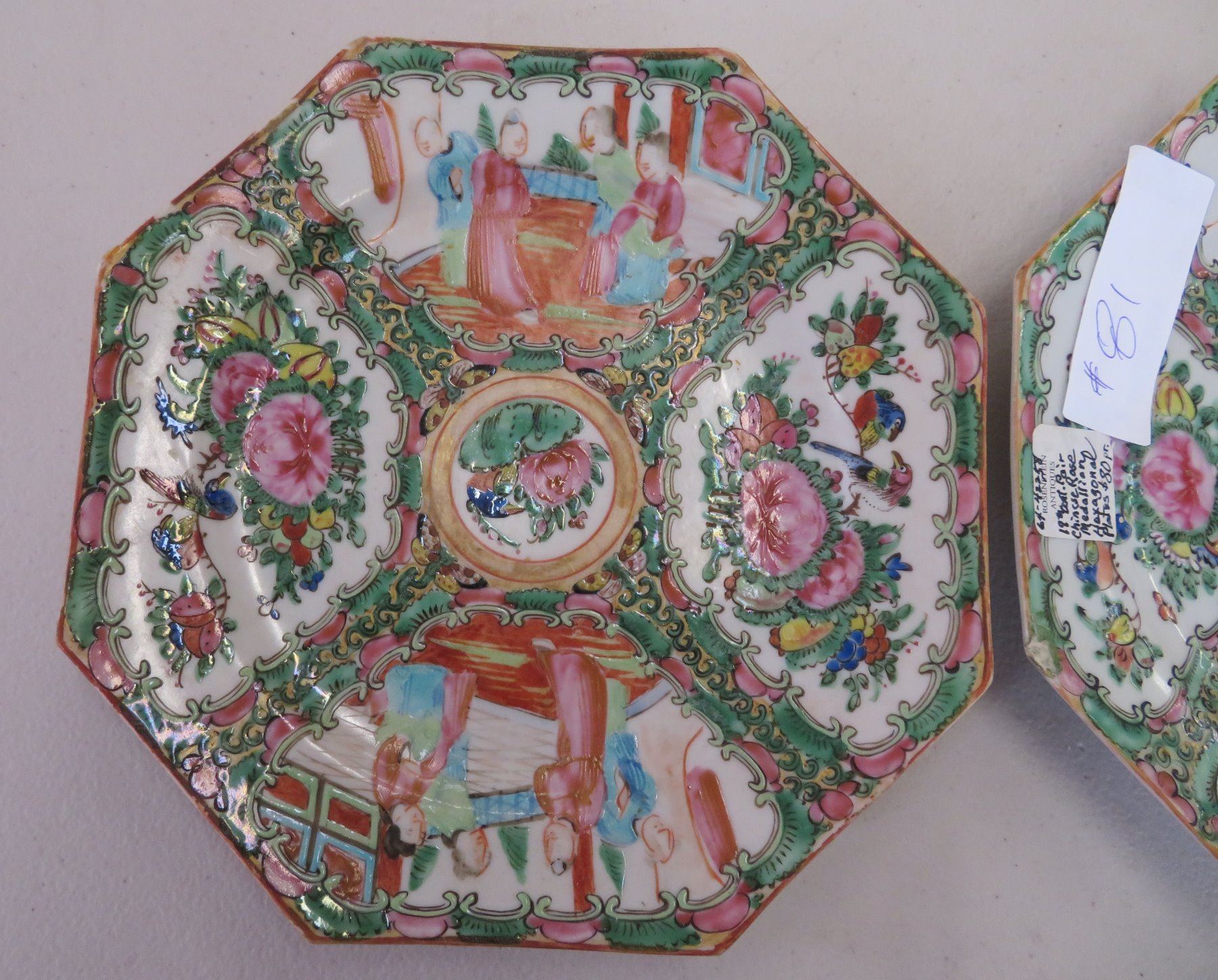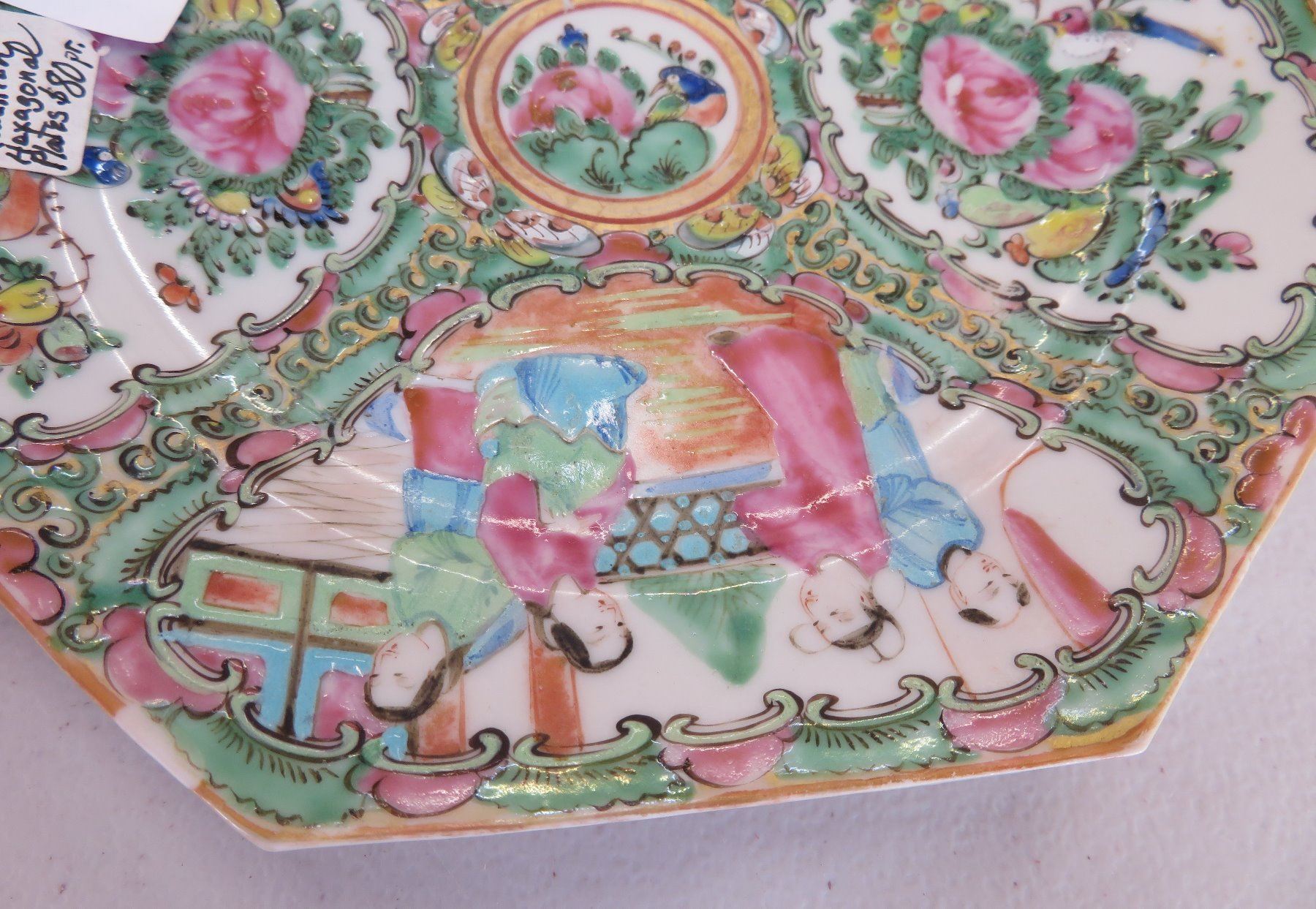 Pair of Rose Medallion Plates, antique items. Made of porcelain, the items measure 7 1/2" x 1". China. Condition: Good, see images. Shipping: $24.50 w/insurance and signature, double-boxed.