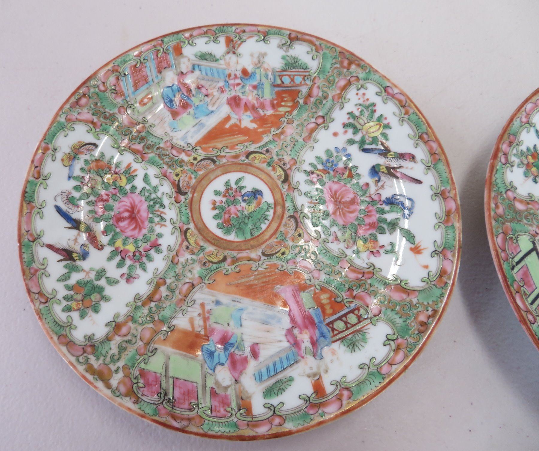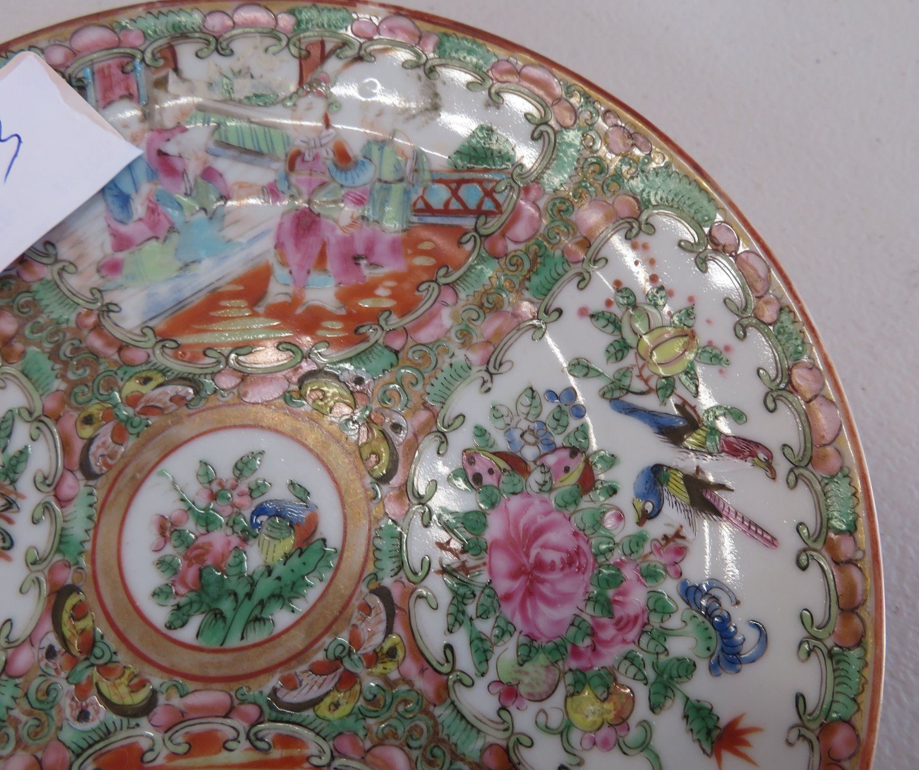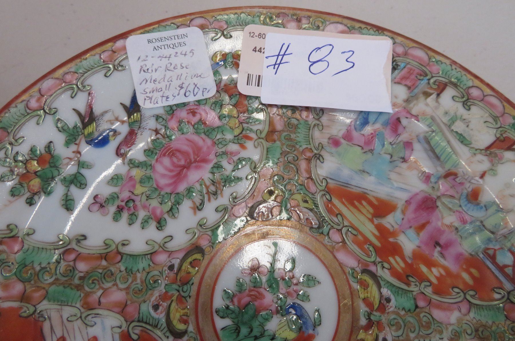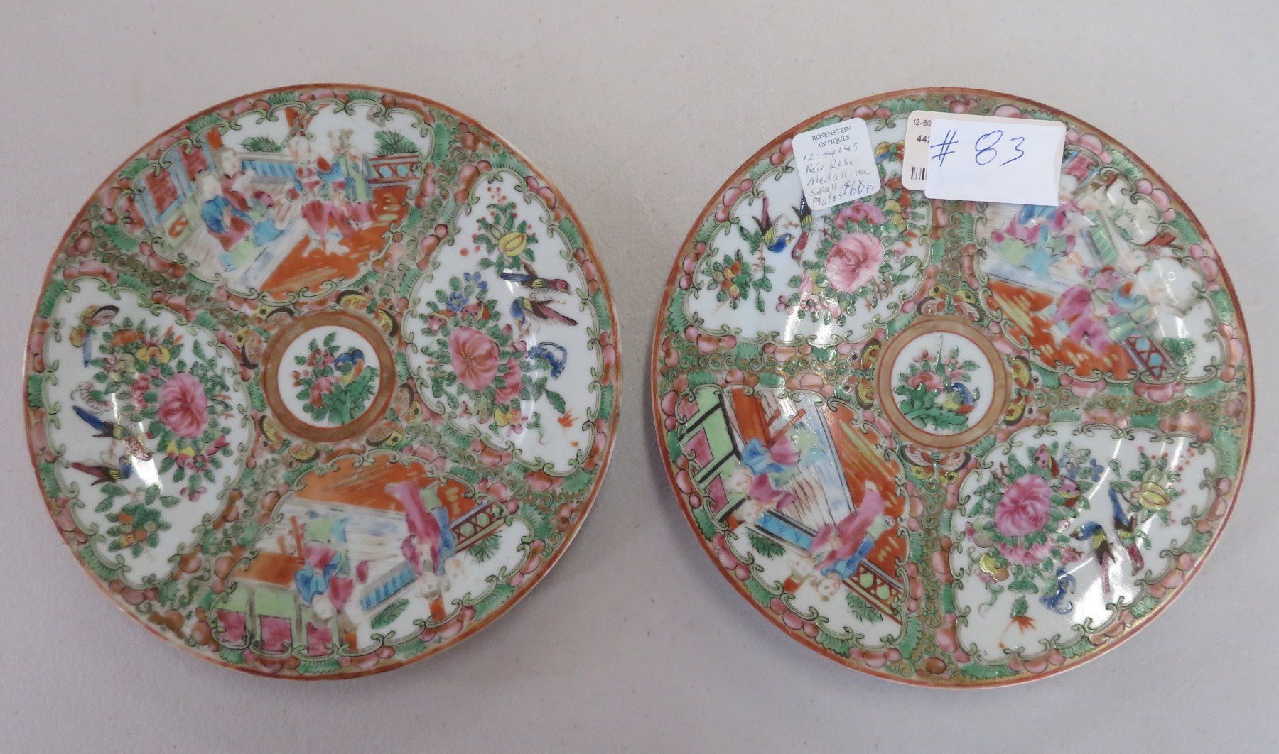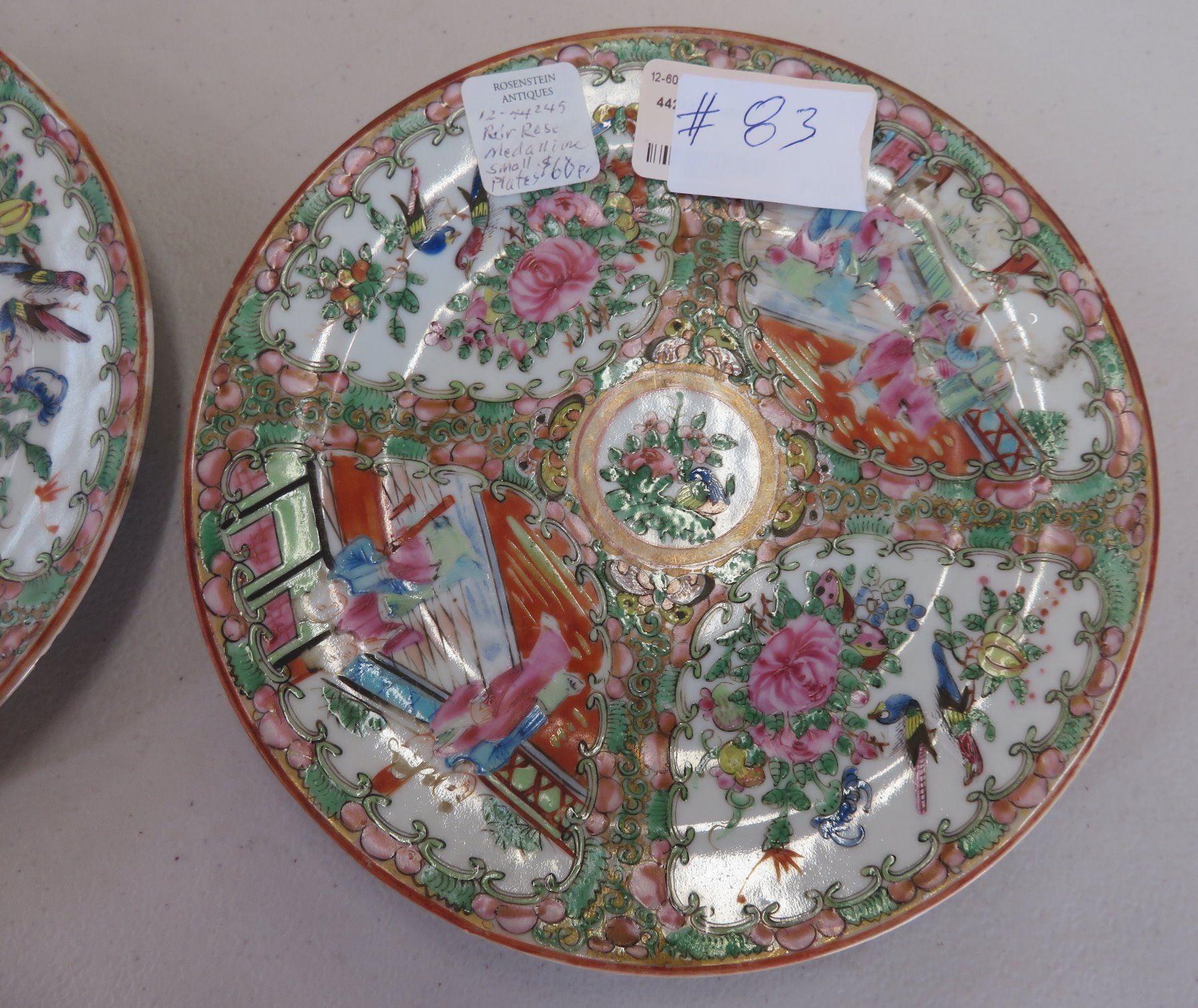 Pair of Rose Medallion Plates, antique items. Made of porcelain, the items measure 7" x 1". China. Condition: Good, see images. Shipping: $26.50 w/insurance and signature, double-boxed.
