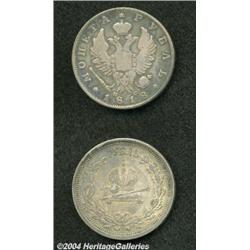 <B>Pair of Roubles,</B></I> Cr-130 1818 VG and Y-43 1883 VF. 2 coins <BR><BR><B>Important notice:</B> Heritage usually auctions material at the rate of 200-250 lots per hour. On some occasions eBay Live bid software or the Internet may not be able to keep up with the pace of the auction. We recommend placing a realistic absentee bid now as insurance to avoid disappointment. Occasionally the auctioneer may eliminate or reject an eBay Live bid, and the auctioneer may also reopen a lot after the close of the eBay live bidding (usually because we missed an audience bid), and may reject your bid even if it shows you as the winning bidder. By bidding via eBay Live, you agree that Heritage may award the lot to another bidder at its sole discretion under the circumstances described above or any other reasonable circumstances. Since eBay bids are not shown to us until we open the lot on the floor, we treat those bids just like floor bids. In most cases the floor responds before the eBay bid is presented to us, due to Internet lag time, so for consistency we have made it a policy that floor bids are always considered first over tie eBay live bids. Also please note that all Heritage lots purchased through eBay Live carry a 20% Buyer's Premium. Please make sure you read the Terms and Conditions before you bid.