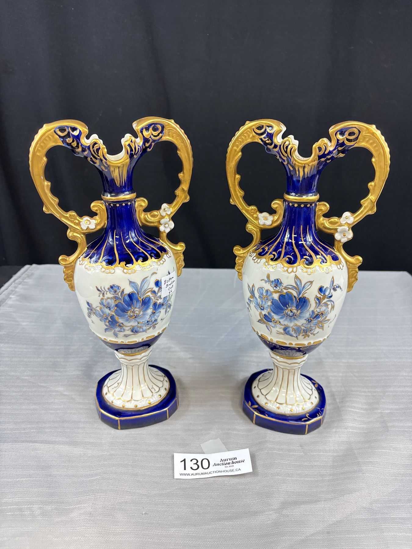 Pair of Royal Dux Chezch Pottery Vases Bottom Broken Out of One