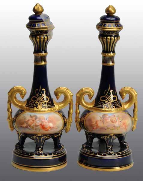 Description Both depict cherubs with beehive mark on bottom. Each scene is different but they are a matching pair. Condition (Near Mint Plus). Size 8 - 1/4" T.