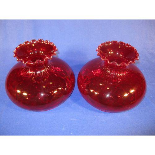 Pair of Ruby shades, heavy, 9 3/4" wide base x 9" tall