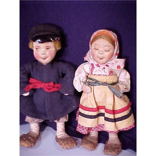 <table width="100%" border="0" cellspacing="0" cellpadding="4"><tr><td><em> </em></td></tr><tr> <td width="100%"> This pair of cloth Russian peasant dolls are unique--look at those faces. They make you smile to look at them. They have no damage or repairs. There is all over minor age soiling but no stains or rips. Both have tags saying Soviet Union. The body that can be seen on both is stocking net material. They have wonderful woven rush shoes. These are very collectible and not items you see often. Ebay distorts the pictures so please send for them from me. These are wonderful and have adorable faces. Thanks. </td></tr><tr> <td> </td></tr><tr> <td>Reference #: 93</td></tr><tr><td>Condition:very good</td></tr><tr><td>Year:pre WWII</td></tr><tr><td>Country:Soviet Union(Russia)</td></tr><tr><td>Maker:Foreign made</td></tr><tr><td>Height:10</td></tr><tr><td>Title:Pair of Russian peasant dolls</td></tr><tr><td>Style:peasant</td></tr><tr><td>Materials: doll</td></tr><tr><td>Type:cloth</td></tr><tr><td>Location:Sidney, Ohio 45365</td></tr></table>