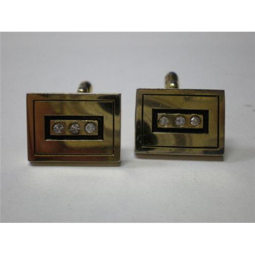 <tr><td>Title:Pair of SWANK Cufflinks w/ 3 Rhinestones</td></tr>