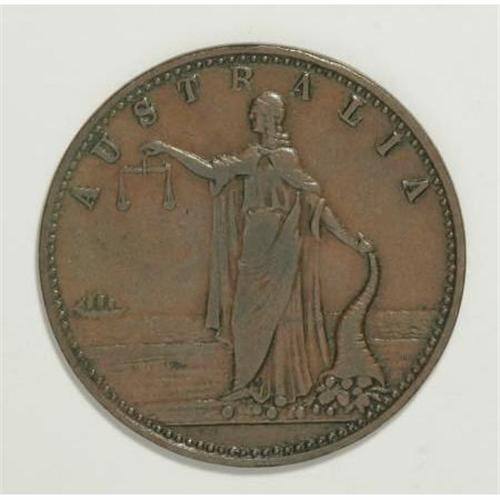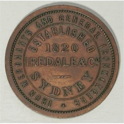 <B>Pair of Scarce Australian 18th Century Tokens.</B></I> Two scarce tokens, listed by their Krause catalog numbers: <B>KM Tn-135</B></I> <B>penny token</B></I> issued by Iredale & Co. of Sydney, New South Wales; and <B>KM Tn-32</B></I> <B>halfpenny token</B></I> issued by James Campbell of Morpeth. The catalog value is approximately $450.<BR><BR><b>Shipping:</b> Coins & Currency (<a target="_blank" href="http://www.heritageauctions.com/common/shipping.php">view shipping information</a>)