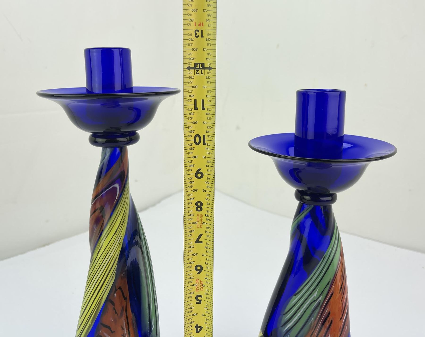 Signed Seguso Viro Murano. Nice pair of graduated candlesticks.
