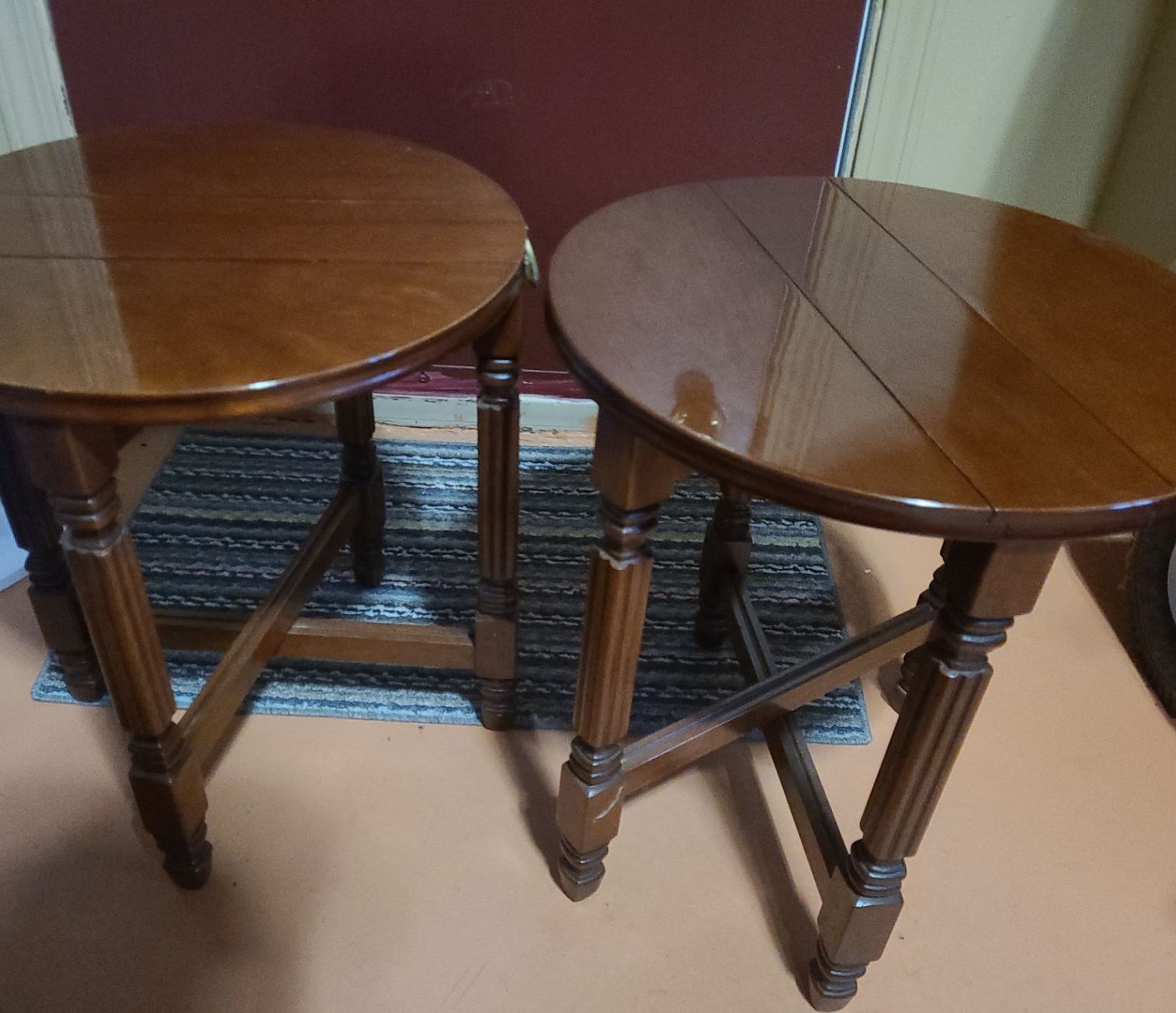 Pair of Side Veneer Tables with 18 T, 16 Diameter Top