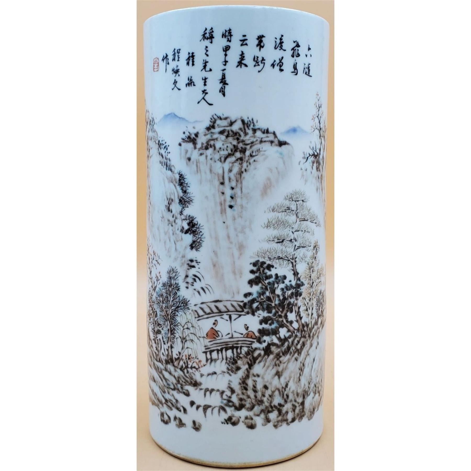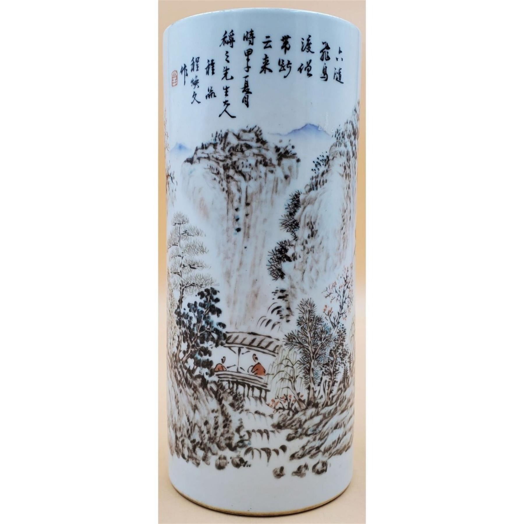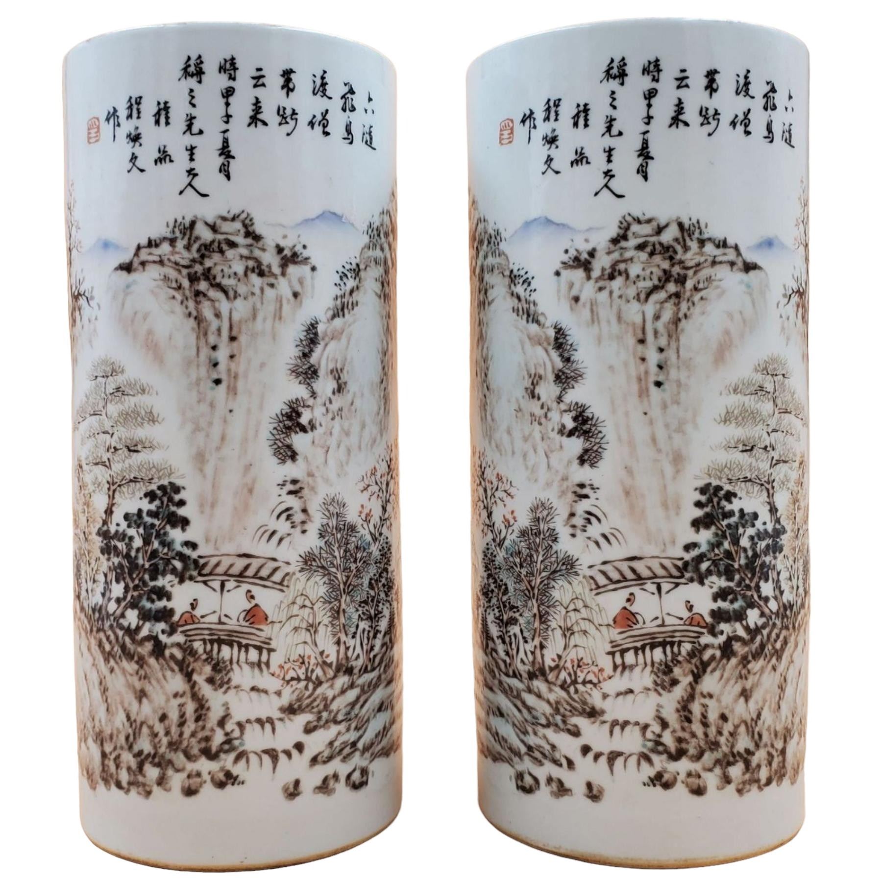 Pair of Signed Chinese Hat Stands with Calligraphy. Measures 4 7/8" x 11 1/8". Provenance: One Person Private Estate Central Florida.