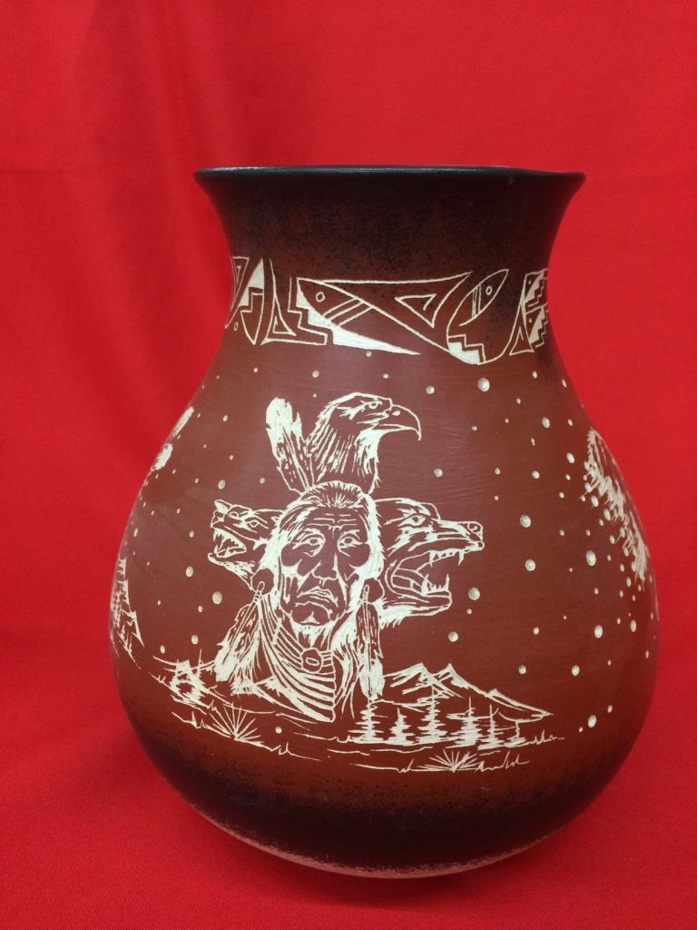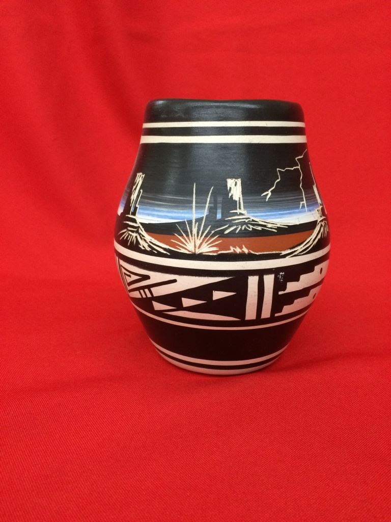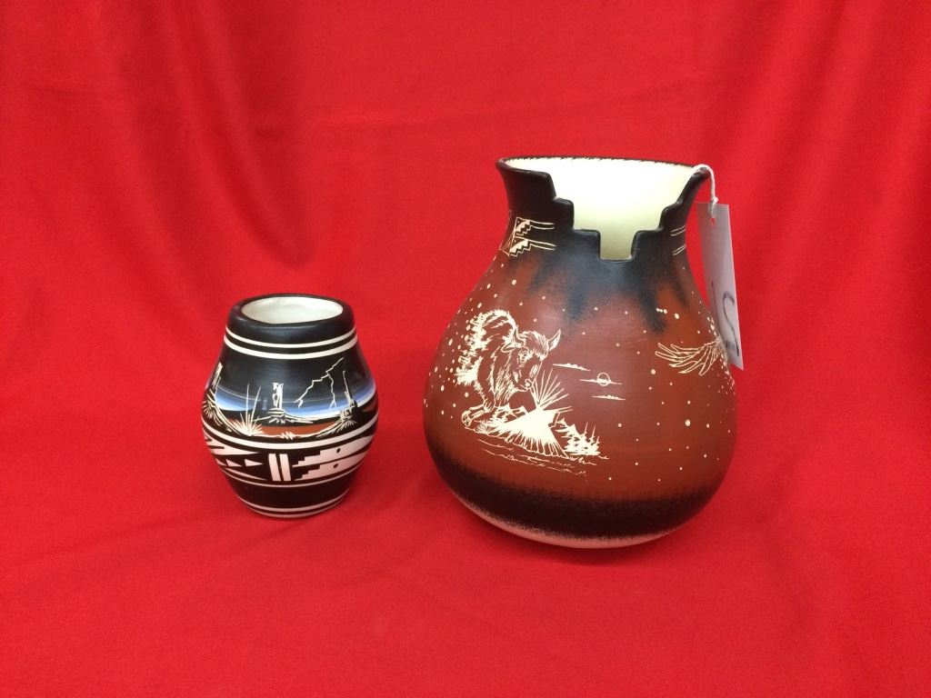 You get 2 very nicely done Navajo pots for 1 money in this lot! Both are signed and they are 5.5” and 9.5” tall. Both are in very nice condition.