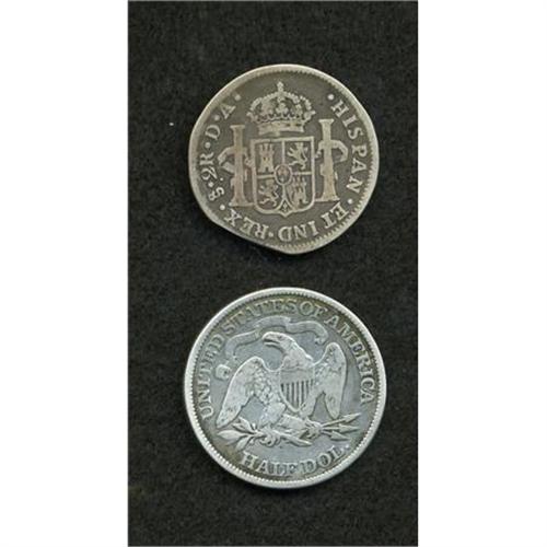 <B>Pair of Silver Counterstamped Coins.</B></I> Silver. Includes a two reals, KM-59, counterstamped<B> G.N. Bowman, </B></I>and a U.S. 1876 Seated Liberty half dollar counterstamped <B>J.F. Luther NY.</B></I> An interesting pair of counterstamps that require further research.<BR><BR><b>Shipping:</b> Coins & Currency (<a target="_blank" href="http://www.heritageauctions.com/common/shipping.php">view shipping information</a>)