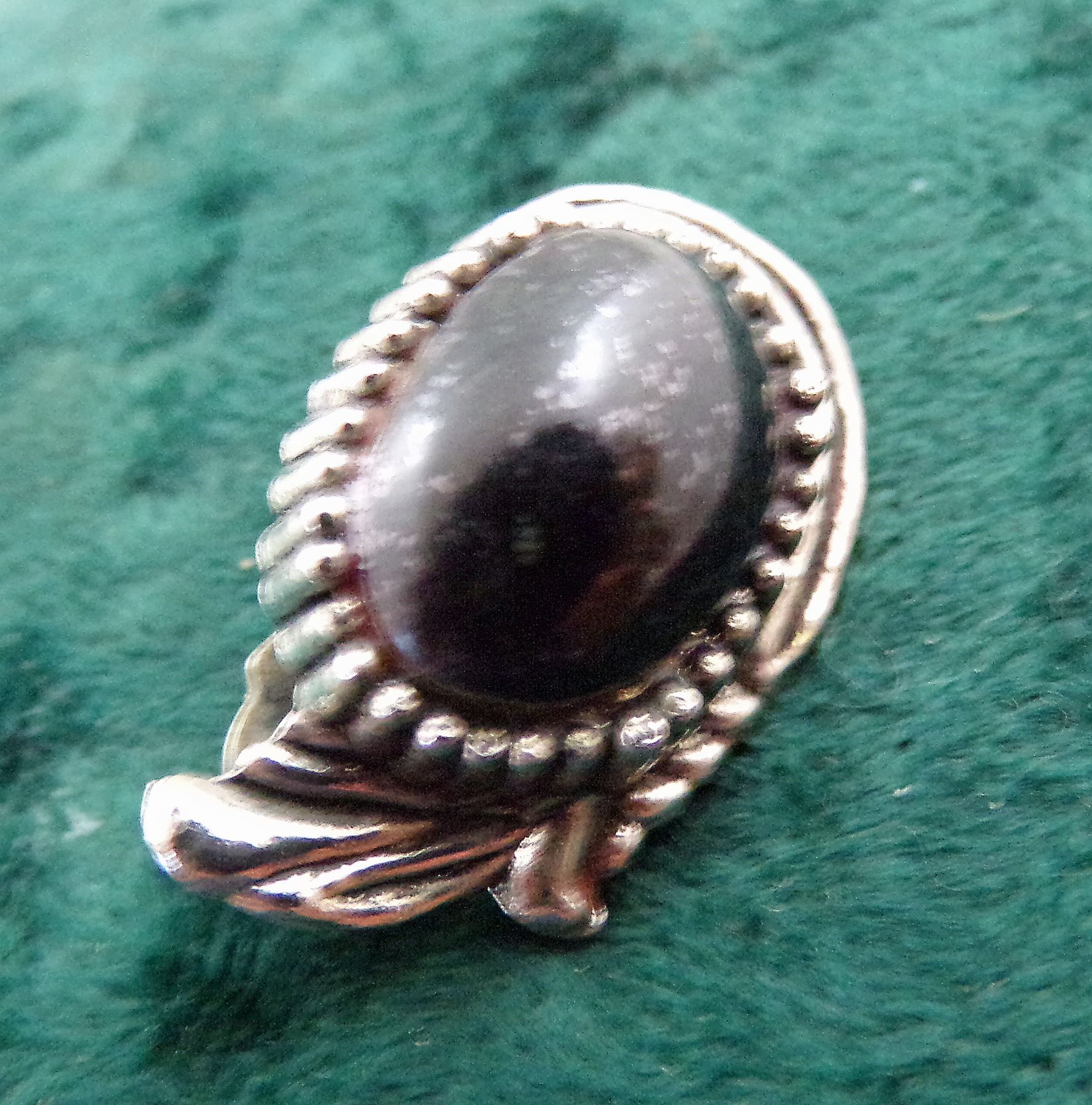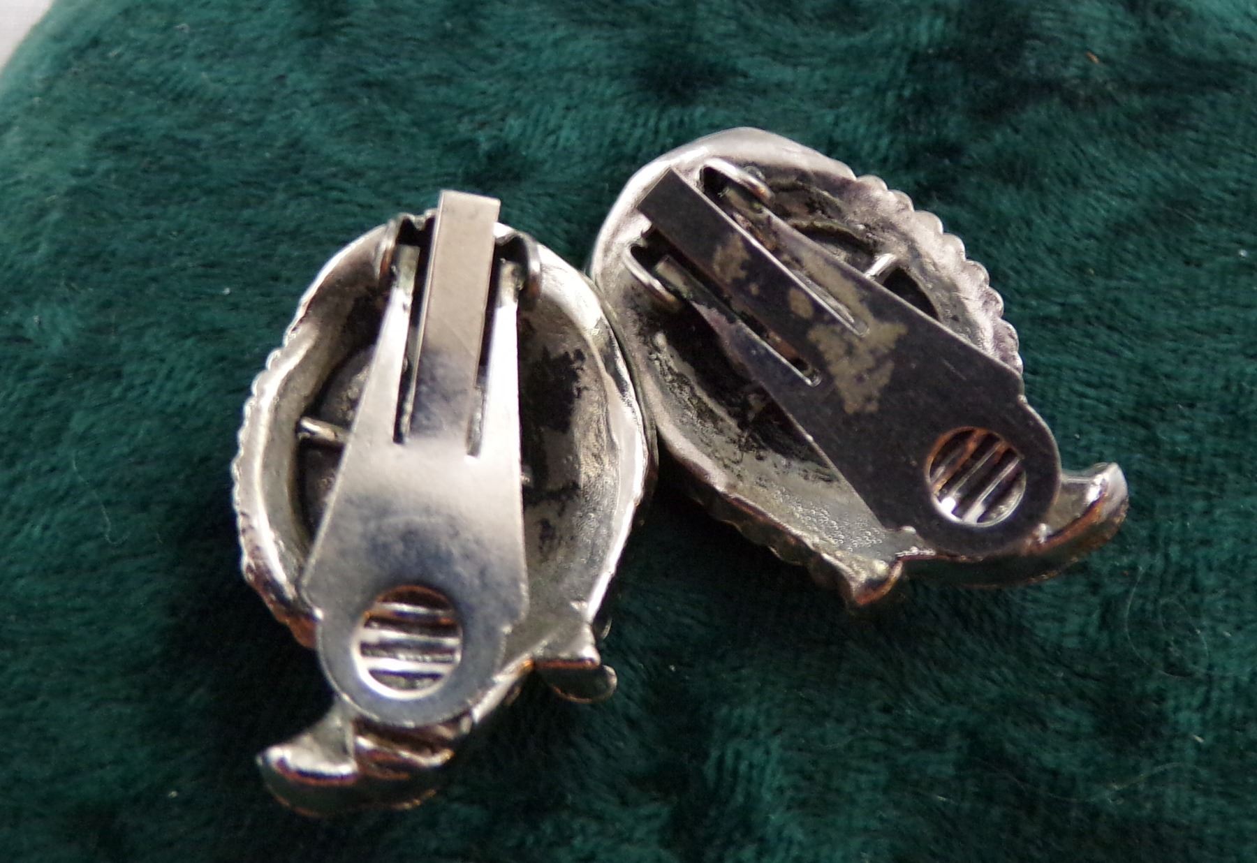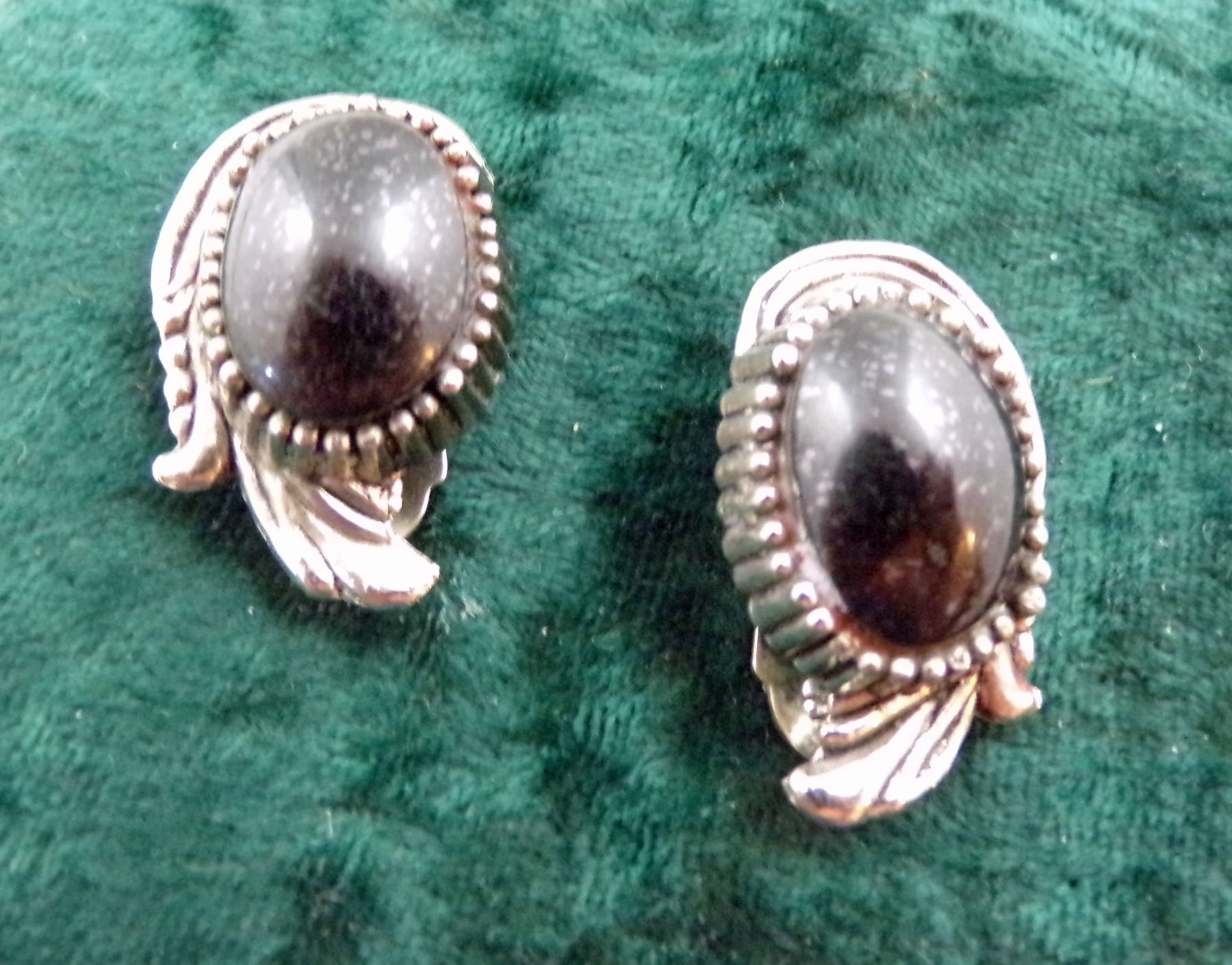 Pair of Silver-Tone Onyx Clip-On Earrings. They measure 1.25'' x .75''