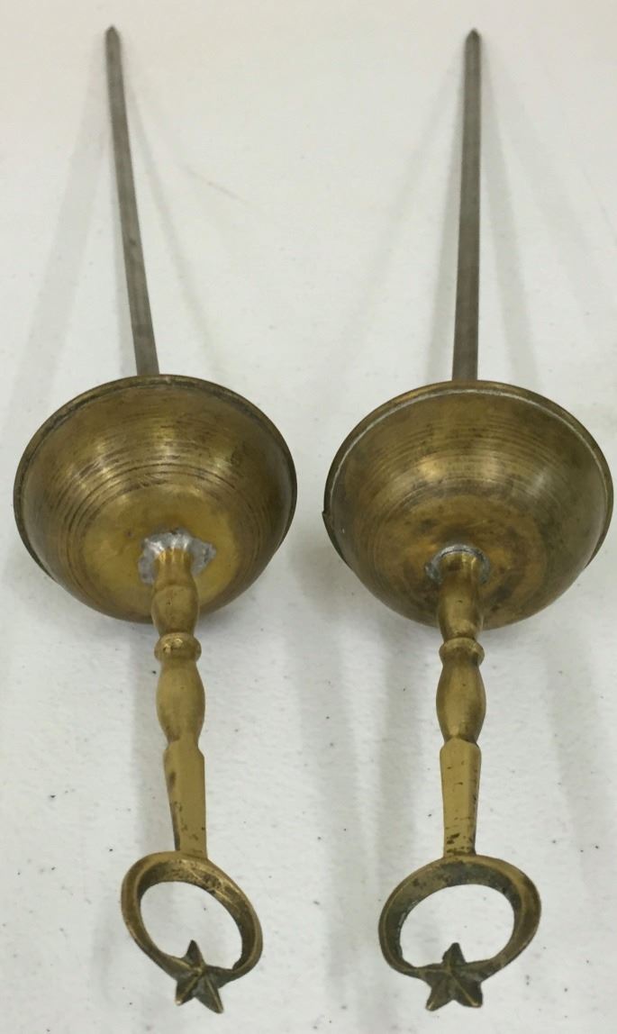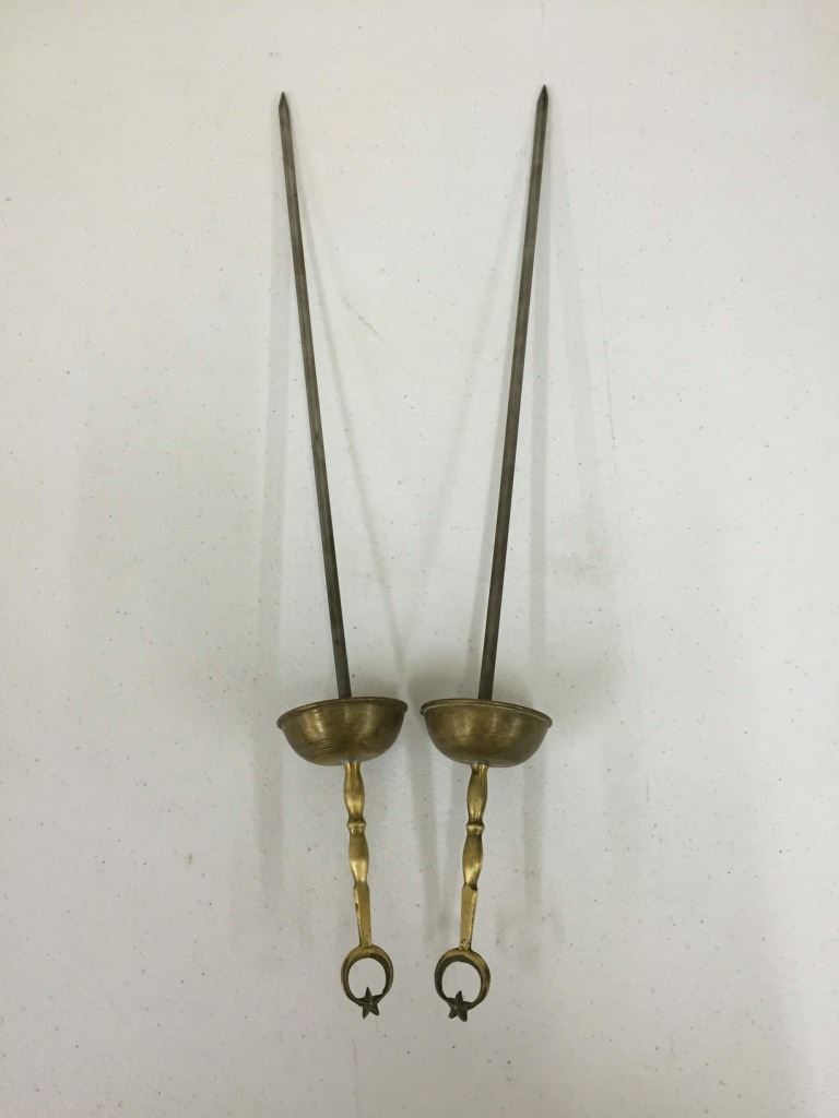 A vintage pair of small-scale Rapier swords with Toledo cup Hilts. They measure approximately 19.5 inches long each. Please look closely at pics as they are an important part of our description. Shipping: There will be a $7 handling / packaging fee for shipping this lot. The actual cost of postage will be added on top of that.
